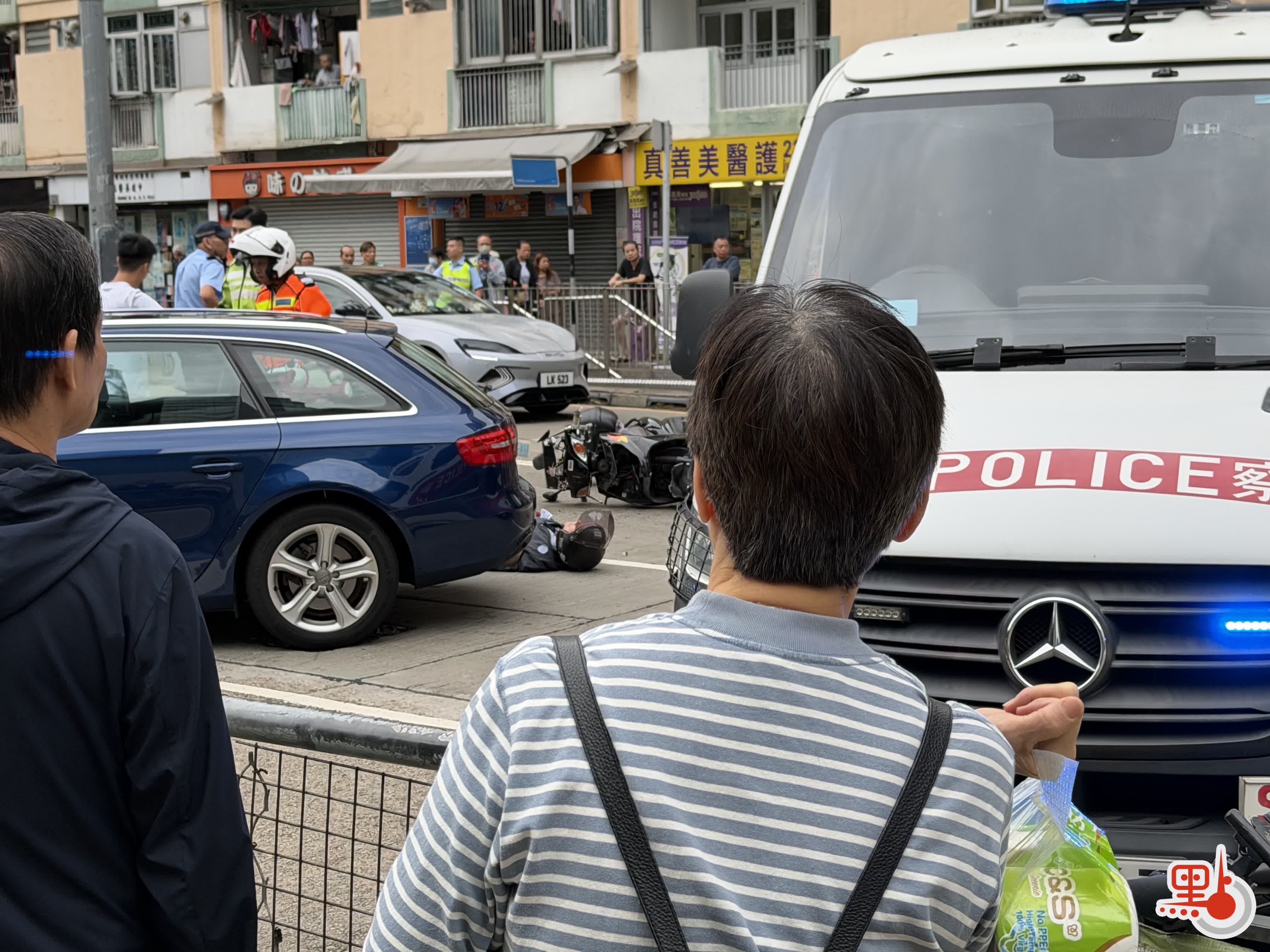 【點新聞報道】牛頭角發生交通意外。今日(11日)上午10時30分許,牛頭角道近港鐵牛頭角站B2出口路段,一輛私家車與電單車相撞。鐵騎士受傷倒地,警員到場處理。