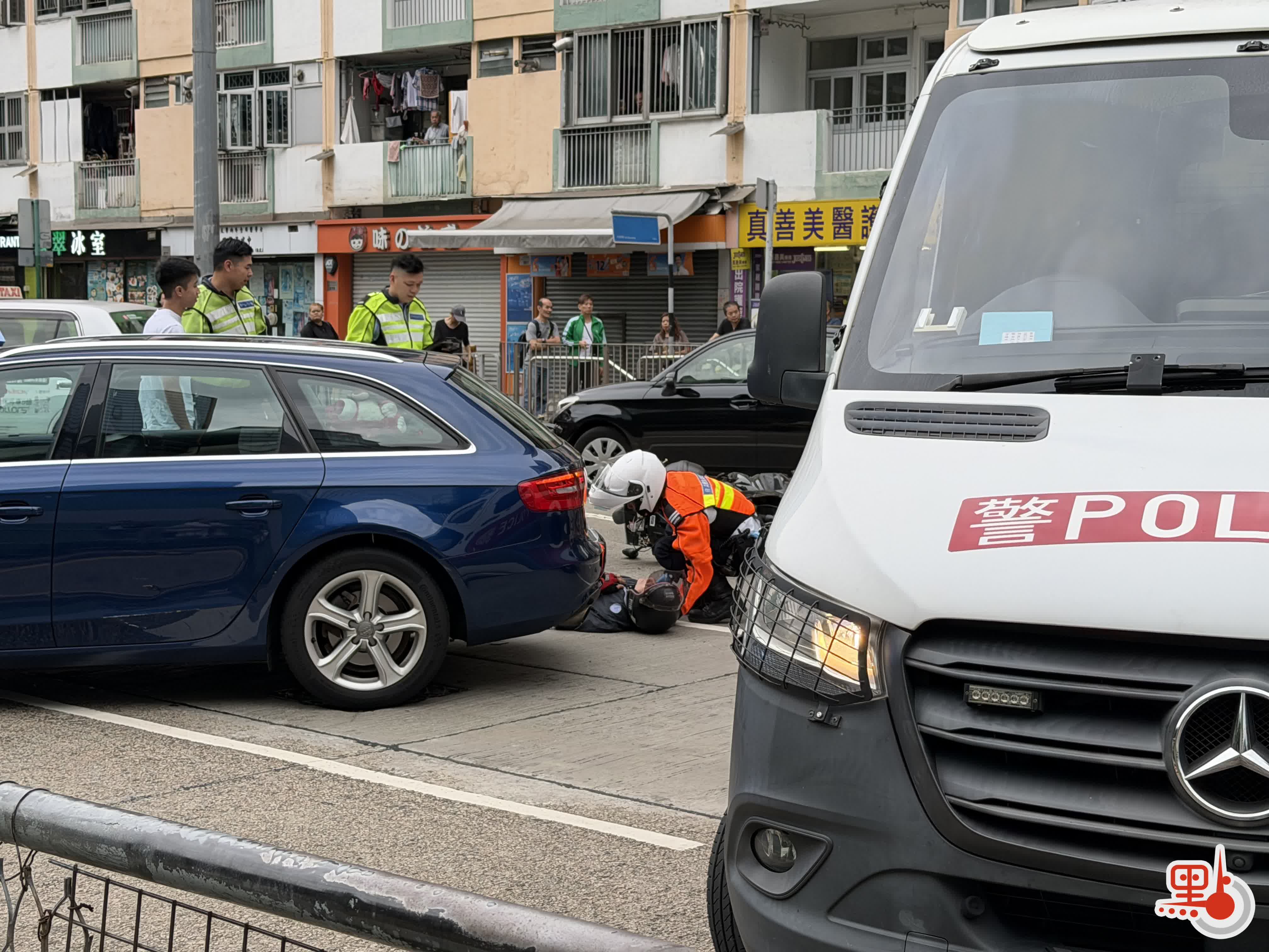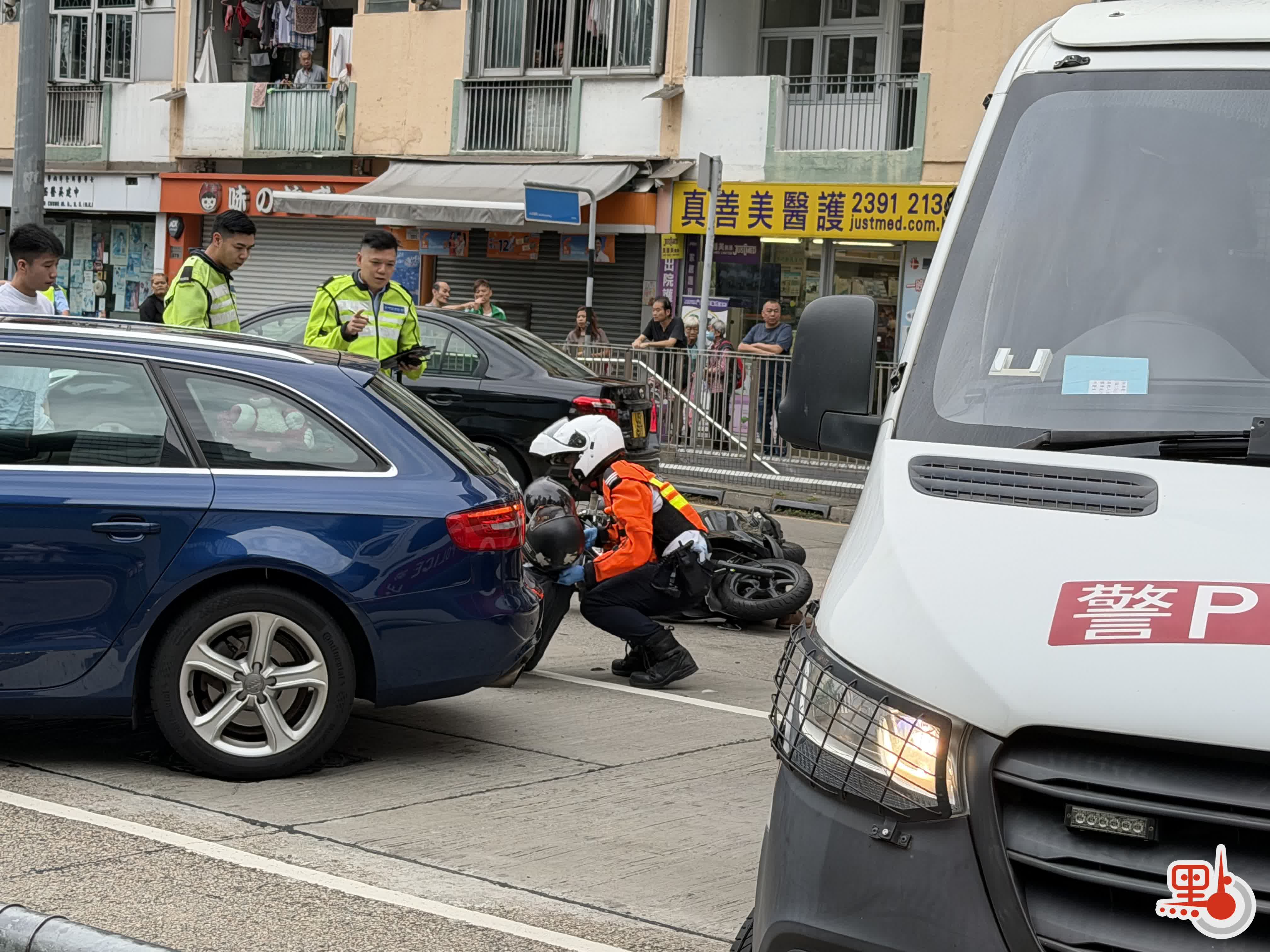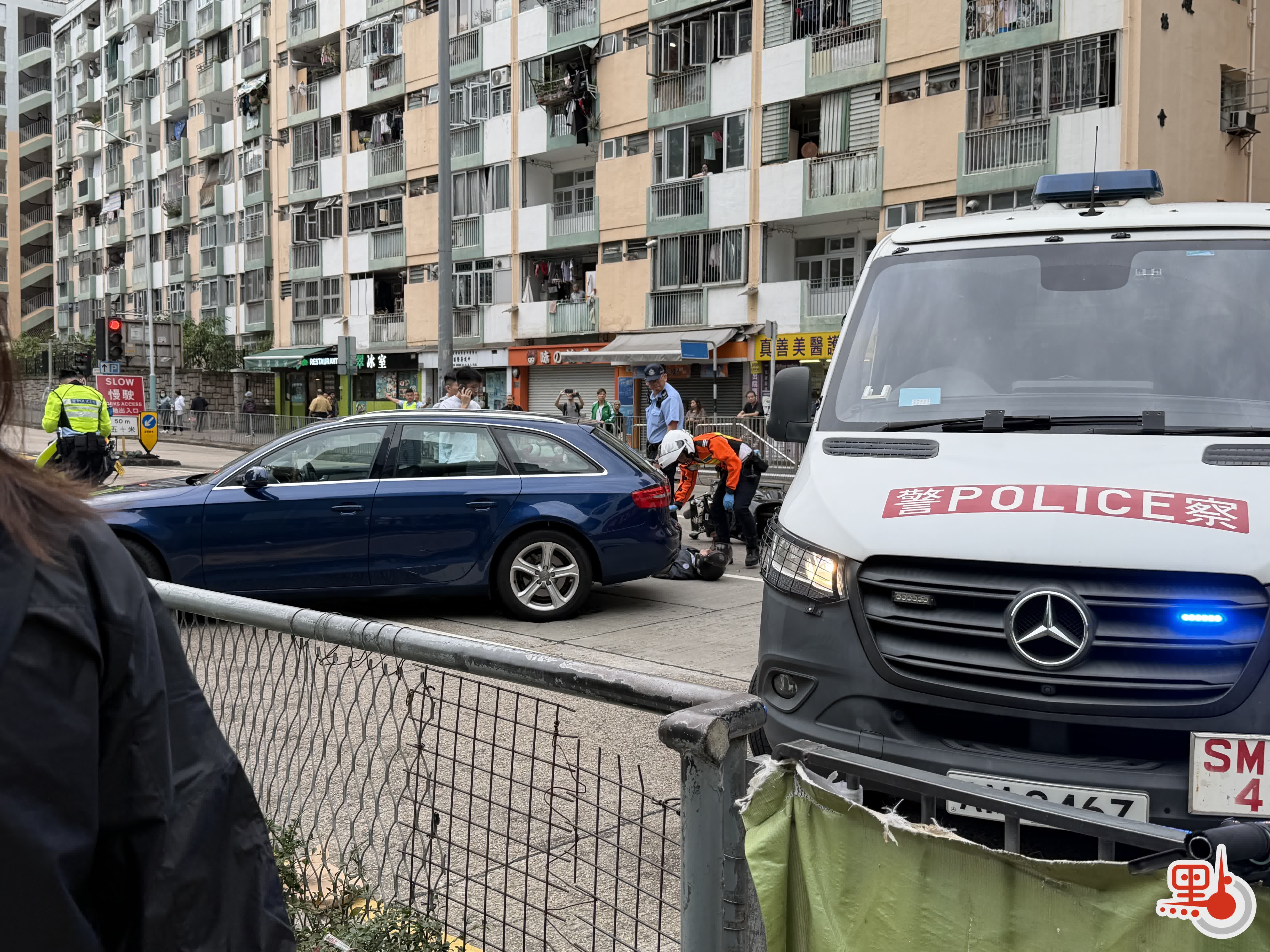 牛頭角道私家車與電單車相撞 鐵騎士受傷倒地