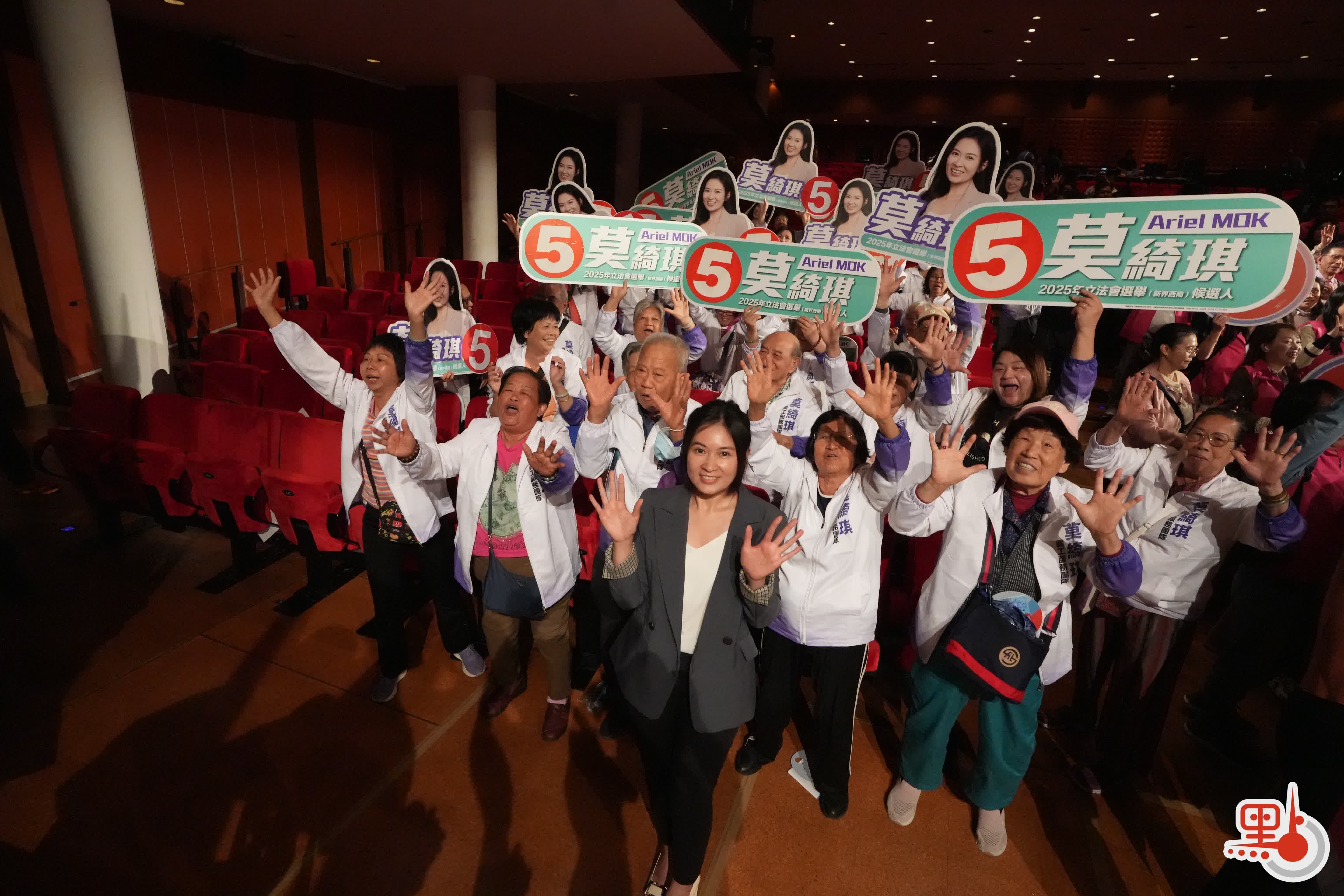 選舉論壇現場,5位候選人的助選團隊紛紛集氣拉票,氛圍熱烈。