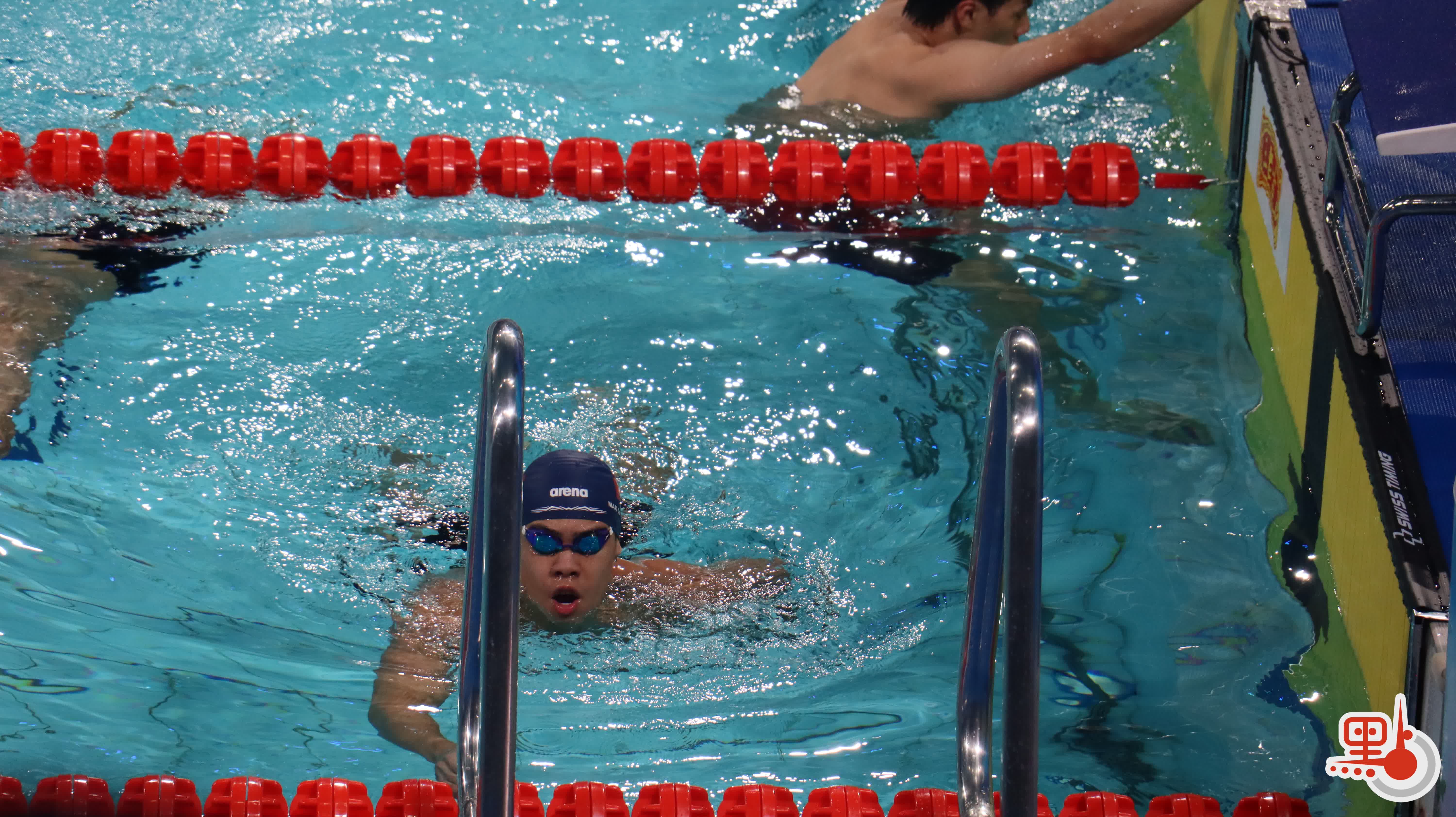 隨着發令槍響,位於第四泳道的覃海洋如離弦之箭躍入水中,在50米轉身處便已確立領先優勢。後半程,覃海洋的衝刺能力更顯強悍,將對手逐漸甩開,最終以接近半秒的優勢鎖定勝局。