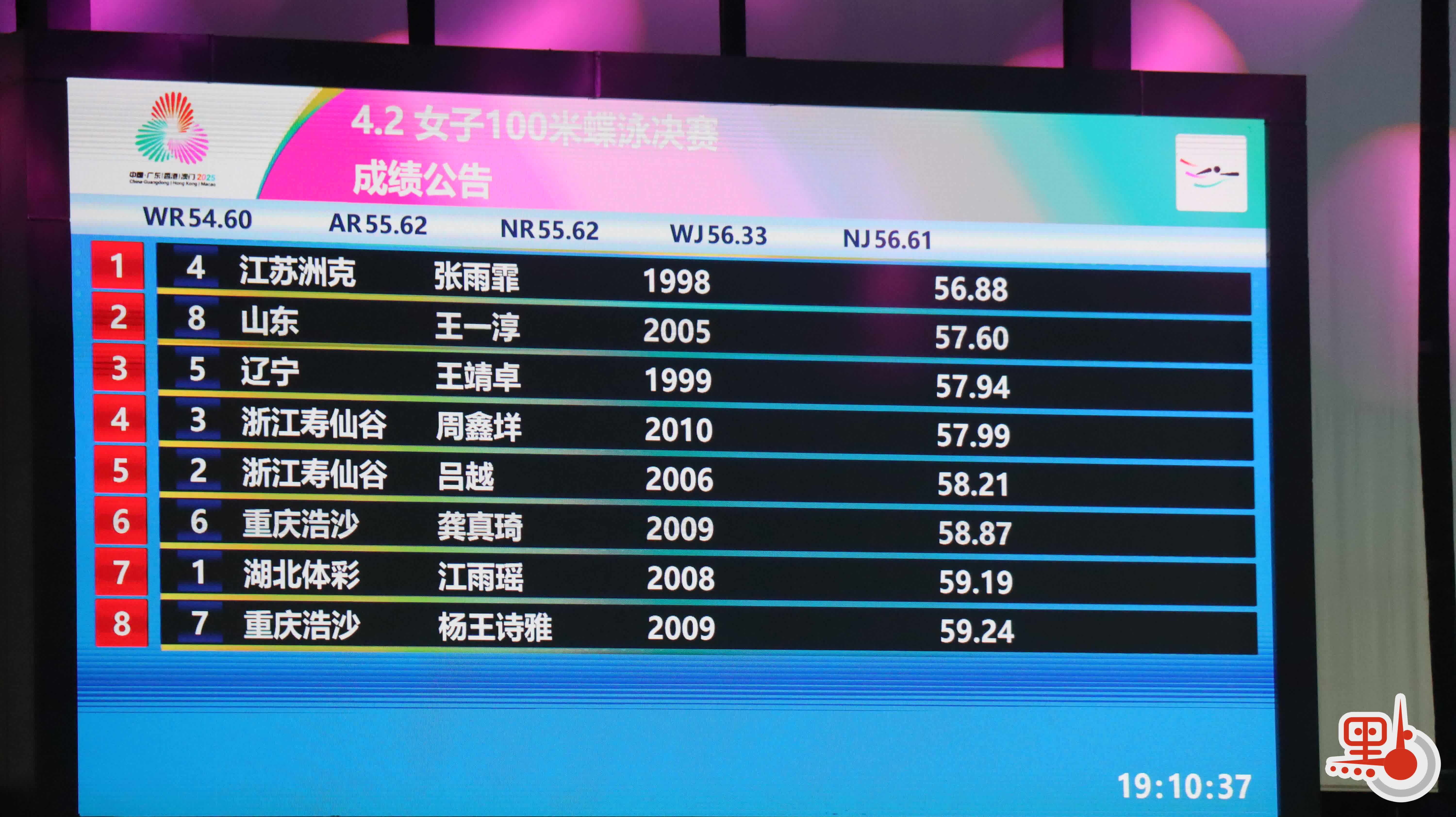 (有片)全運會|張雨霏女子100米蝶泳強勢奪冠 快次名近1秒