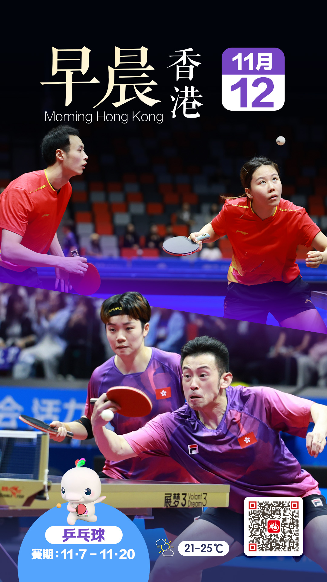 本屆乒乓球賽事自2025年11月7日至20日在澳门银河综艺馆舉行。今日的選圖為昨日(11日)遼寧隊組合陳幸同(左)/徐海東在比賽中。當日,在澳門舉行的第十五屆全國運動會乒乓球混合雙打1/4決賽中,遼寧隊組合陳幸同/徐海東4比1戰勝香港隊組合黃鎮廷/杜凱琹,晉級四強。