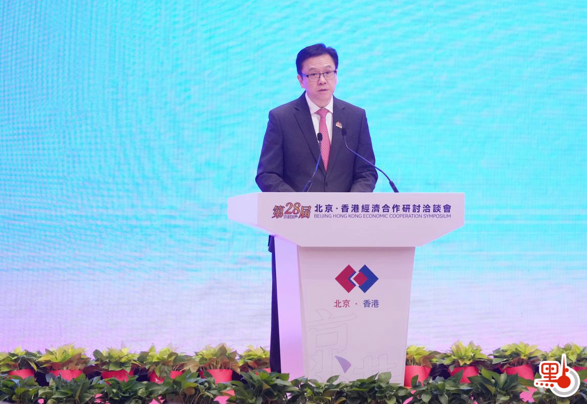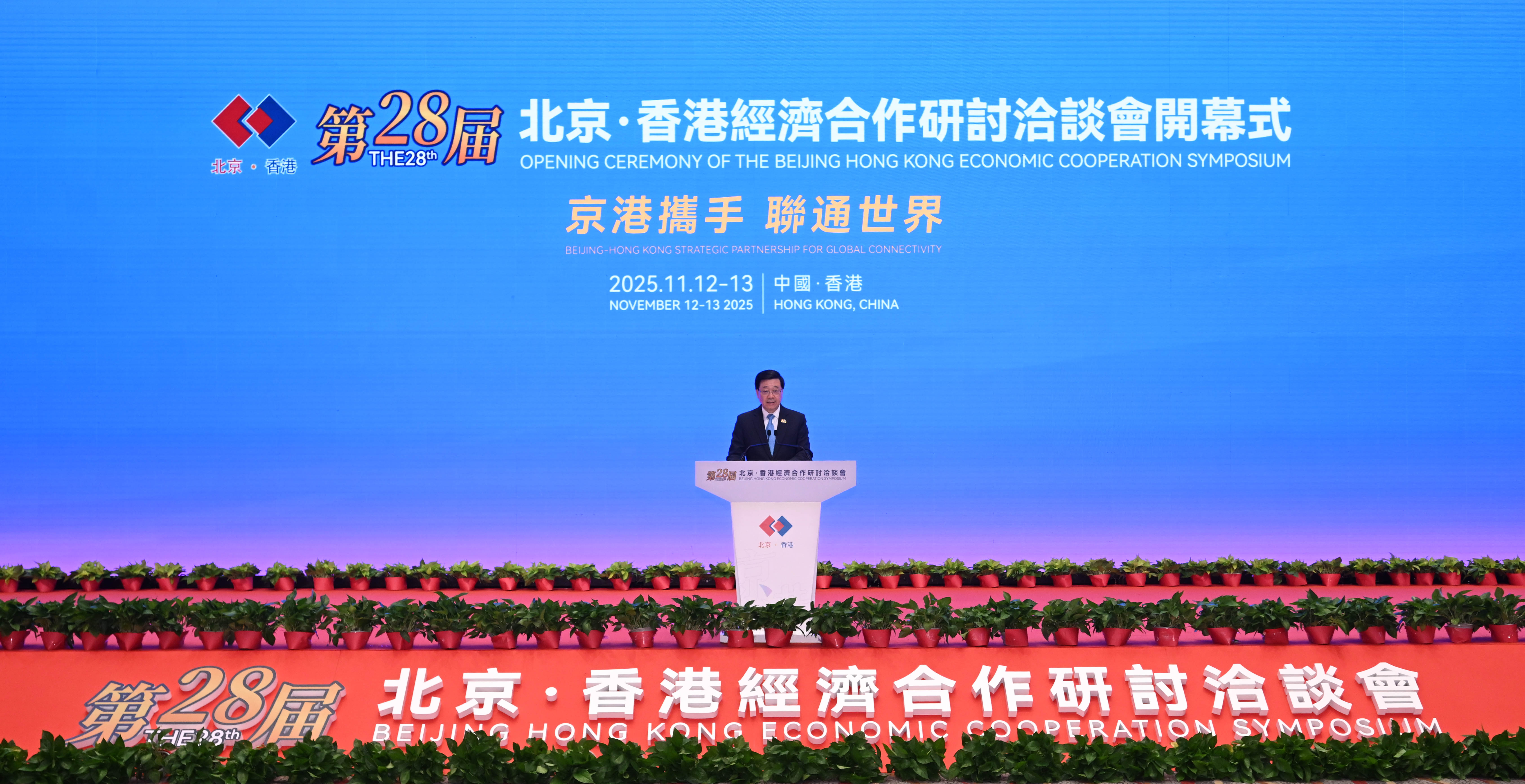 李家超指出,二十屆四中全會上月在北京勝利閉幕,並審議通過《中共中央關於制定國民經濟和社會發展第十五個五年規劃的建議》。《建議》指出要鞏固提升京津冀、粵港澳大灣區等高質量發展動力源作用,支持香港建設國際創新科技中心。本屆京港洽談會以「京港攜手 聯通世界」為主題,他期待面對複雜的國際形勢,京港兩地用好自身優勢,緊密合作,搭建更多交流平台,攜手攻堅克難,開拓發展新藍海。
