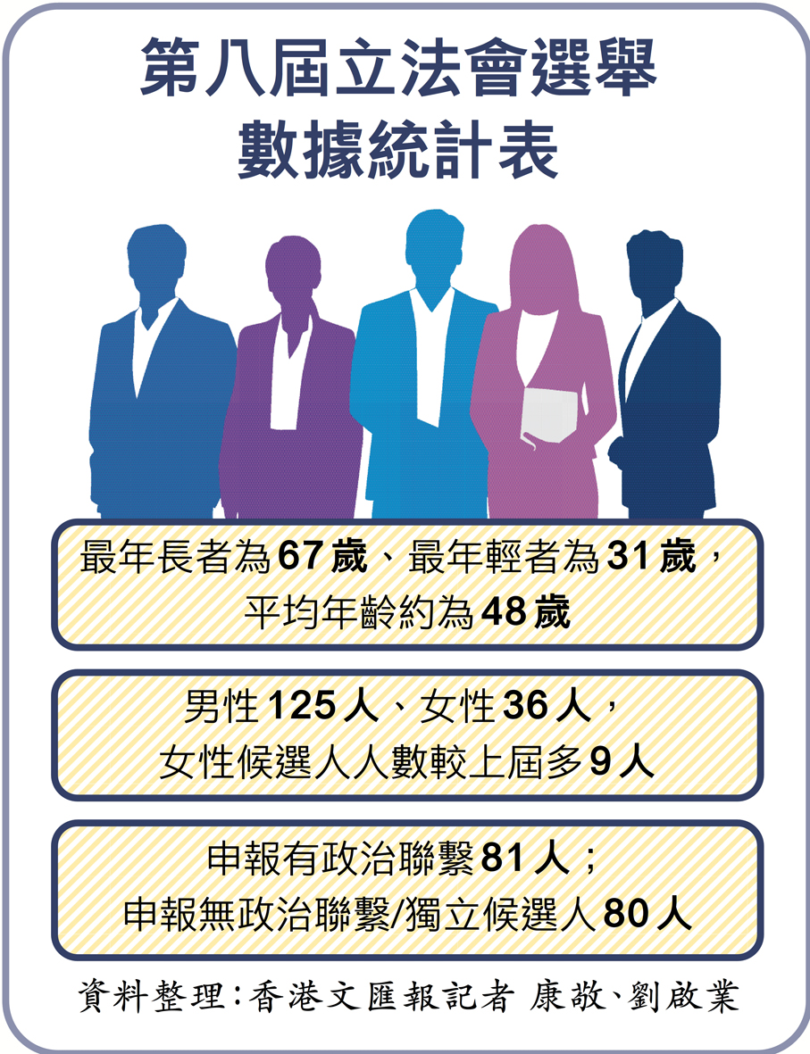 (香港文匯報記者 柴婧)161位不同背景的候選人,帶同161種不同的思考、見解、經驗參選第八屆立法會選舉,為選舉帶來五光十色的風采,亦為下一屆立法會構建強勁、多元議會奠定基礎條件。