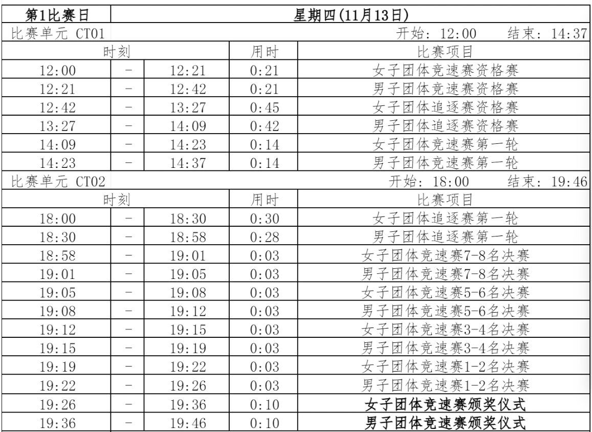 今晚6時起,將繼續進行男女團體追逐賽第一輪、團體競速賽決賽,並於最後舉行團體競速賽的頒獎儀式。