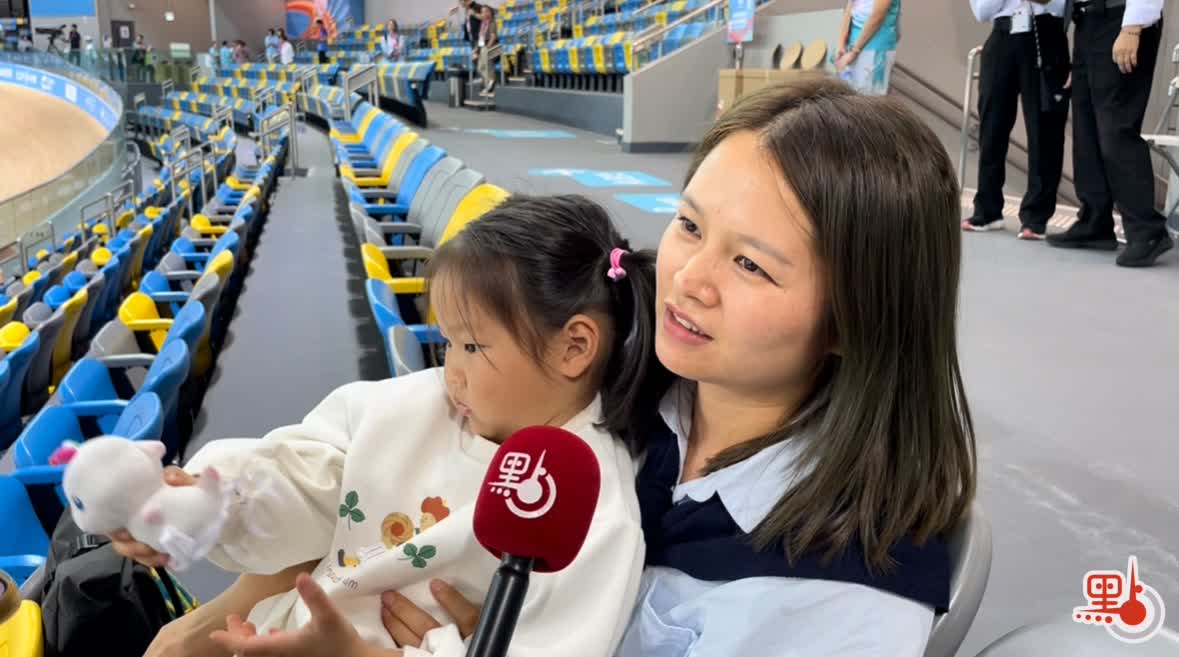 來自廣東省的何女士與先生及女兒今早搭乘9點多的車特意來港觀看比賽。她表示,比賽很刺激,自己的心跳也會隨着運動員的速度而變化。她亦表示比賽場地環境好,座位乾淨。最後,她和女兒紛紛為運動員加油打氣,希望運動員們都保持健康。
