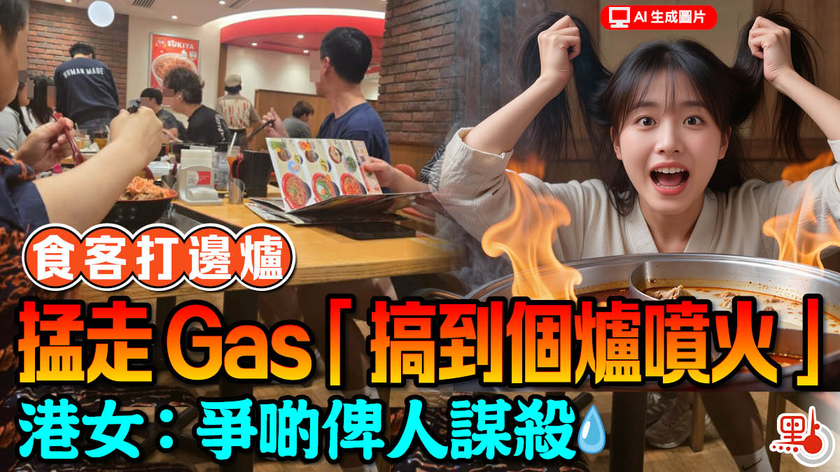 該名港女在社交平台threads發文指,日前首次到連鎖日式牛丼店Sukiya吃壽喜燒,卻「食到爭啲俾人謀殺」。她表示,用餐其間鄰桌有女生傳出尖叫,原來對方未有關爐,便直接拔走石油氣瓶導致噴火,「食食下中間張枱個女仔突然間喺度尖叫,原來係佢未熄火就掹咗個爐支gas出嚟,然後搞到個爐噴火」。