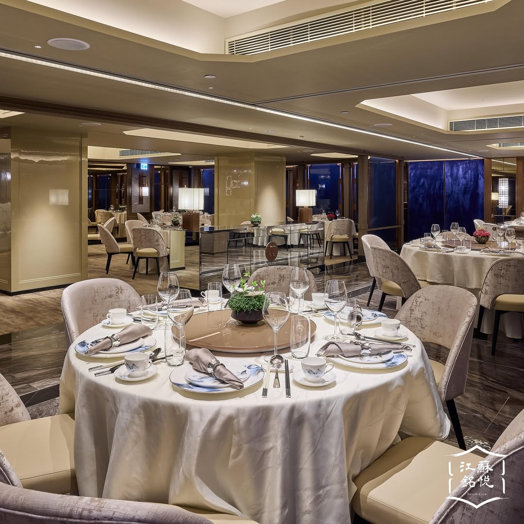 以典雅四合院風格設計的高級江浙菜館,傳統混合創新。雙色鎮江餚肉是必點,水晶餚肉晶瑩剔透、口感彈潤,配特製鎮江醋清爽酸甜;杭州富貴雞製作需時近三天,以荷葉包裹、塘泥封好後焗製,上桌充滿儀式感;招牌灌湯小籠包皮薄多汁,懷舊爆汁生煎包底層香脆、內餡多汁。秋季推出大閘蟹盛宴,蟹粉菜式豐富。