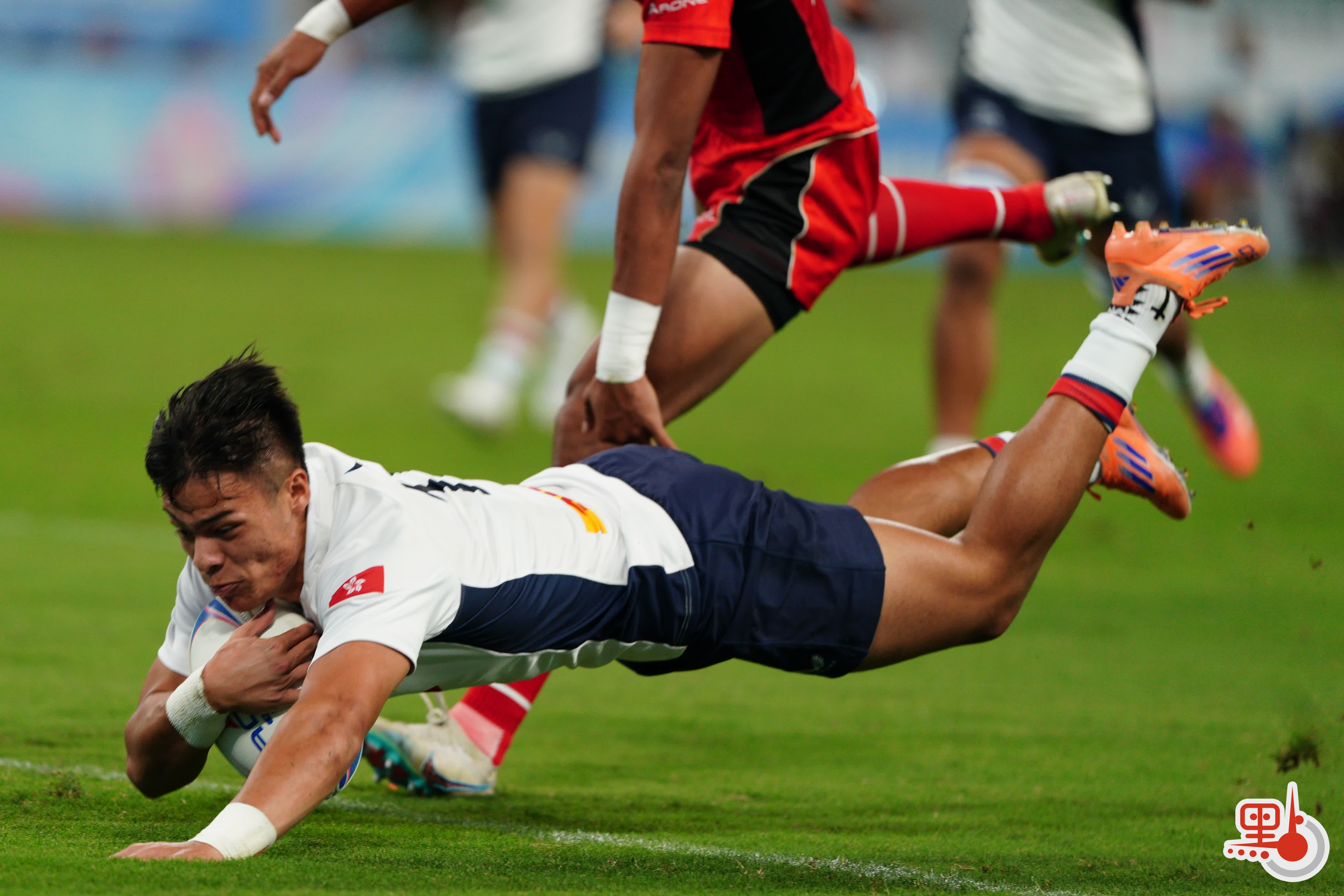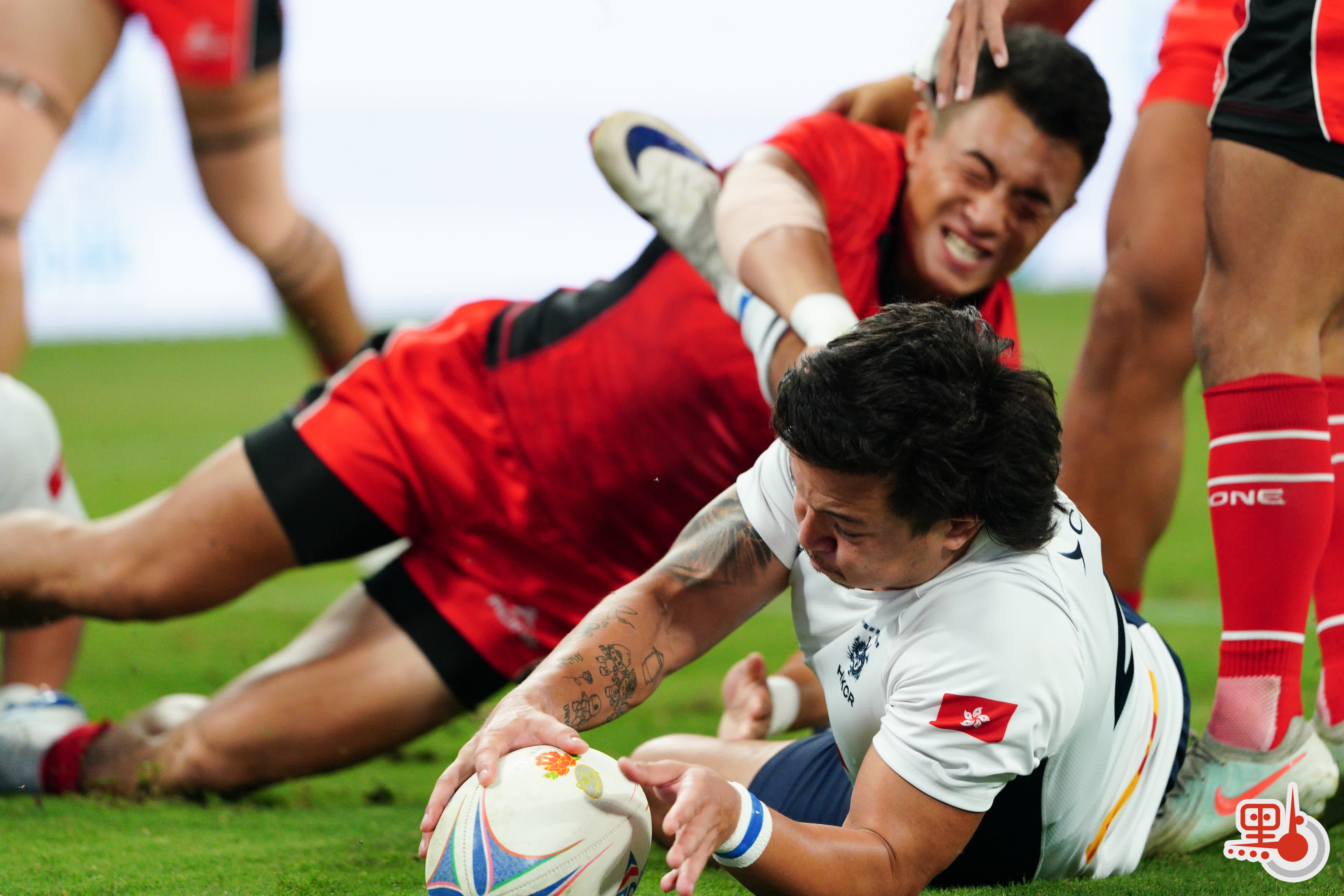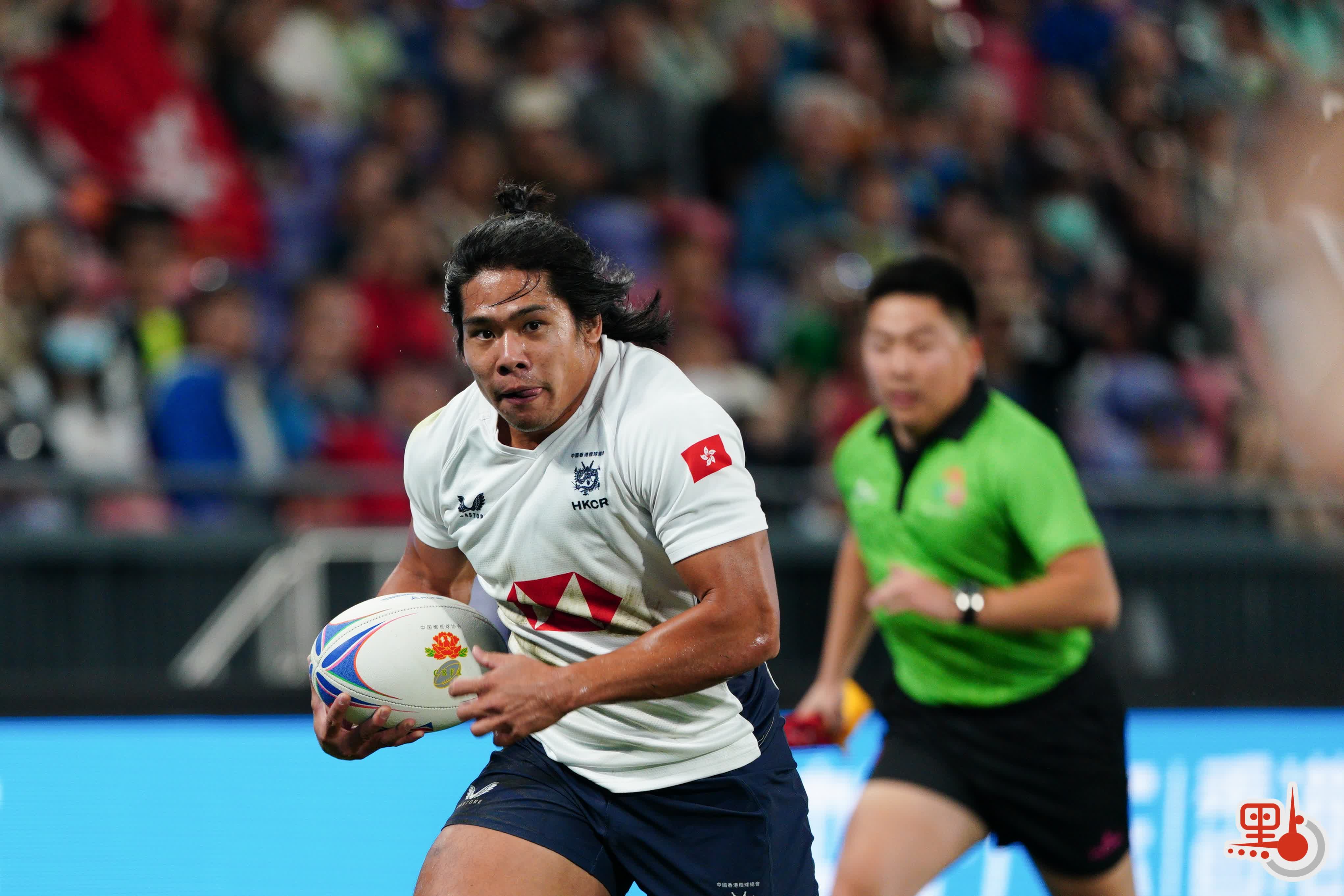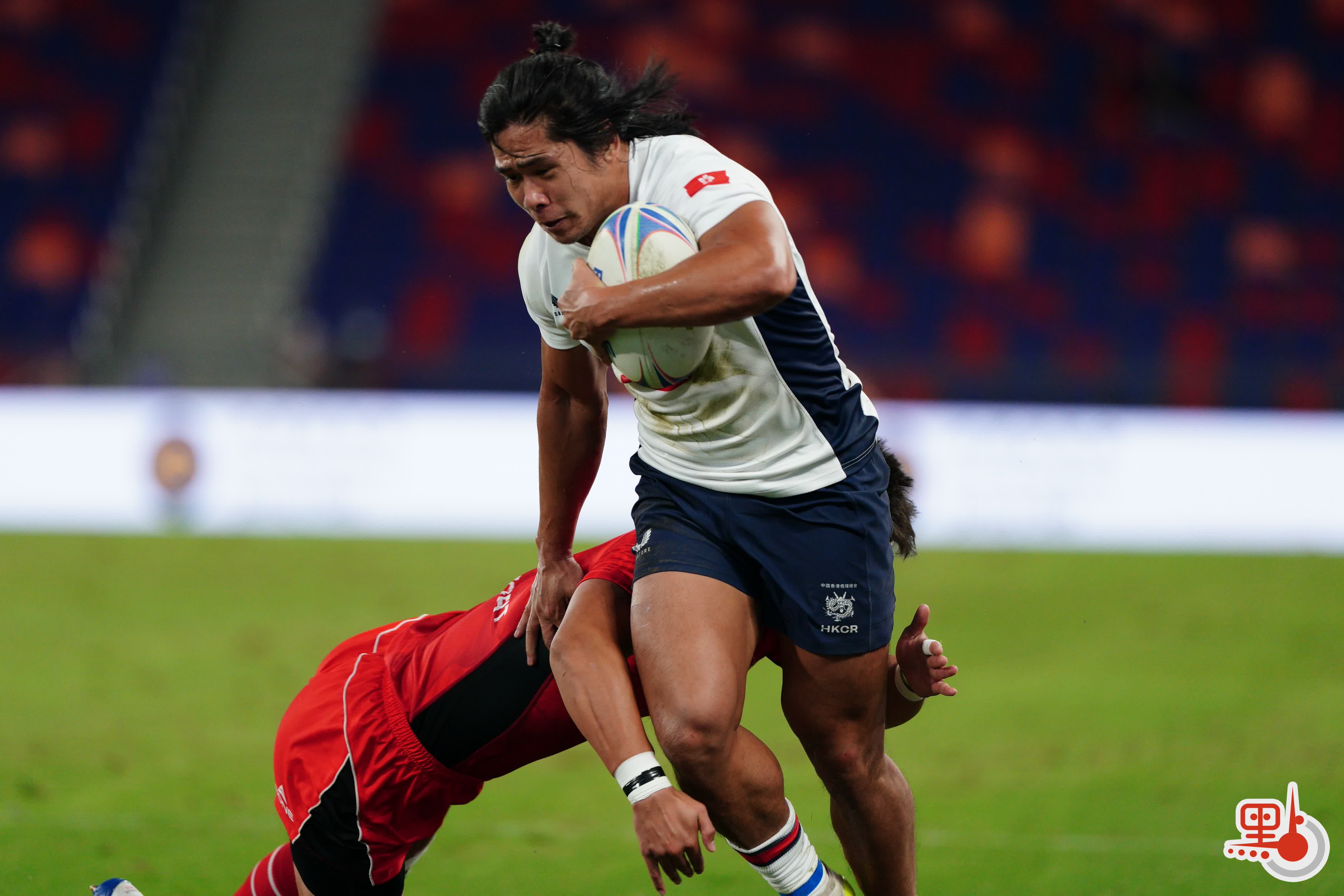 短暫休息後,下半場比賽更加激烈,雙方在前半段展開快速攻防。香港隊12號球員房傑鋒持球衝鋒,成功達陣得分,11號球員芮飛亦成功達陣並追加射門,將香港隊比分優勢擴大至31∶5。隨後,香港隊一直保持大比分領先,最終以43∶5擊敗內蒙古隊,實現小組賽三連勝,並成功晉級四強。