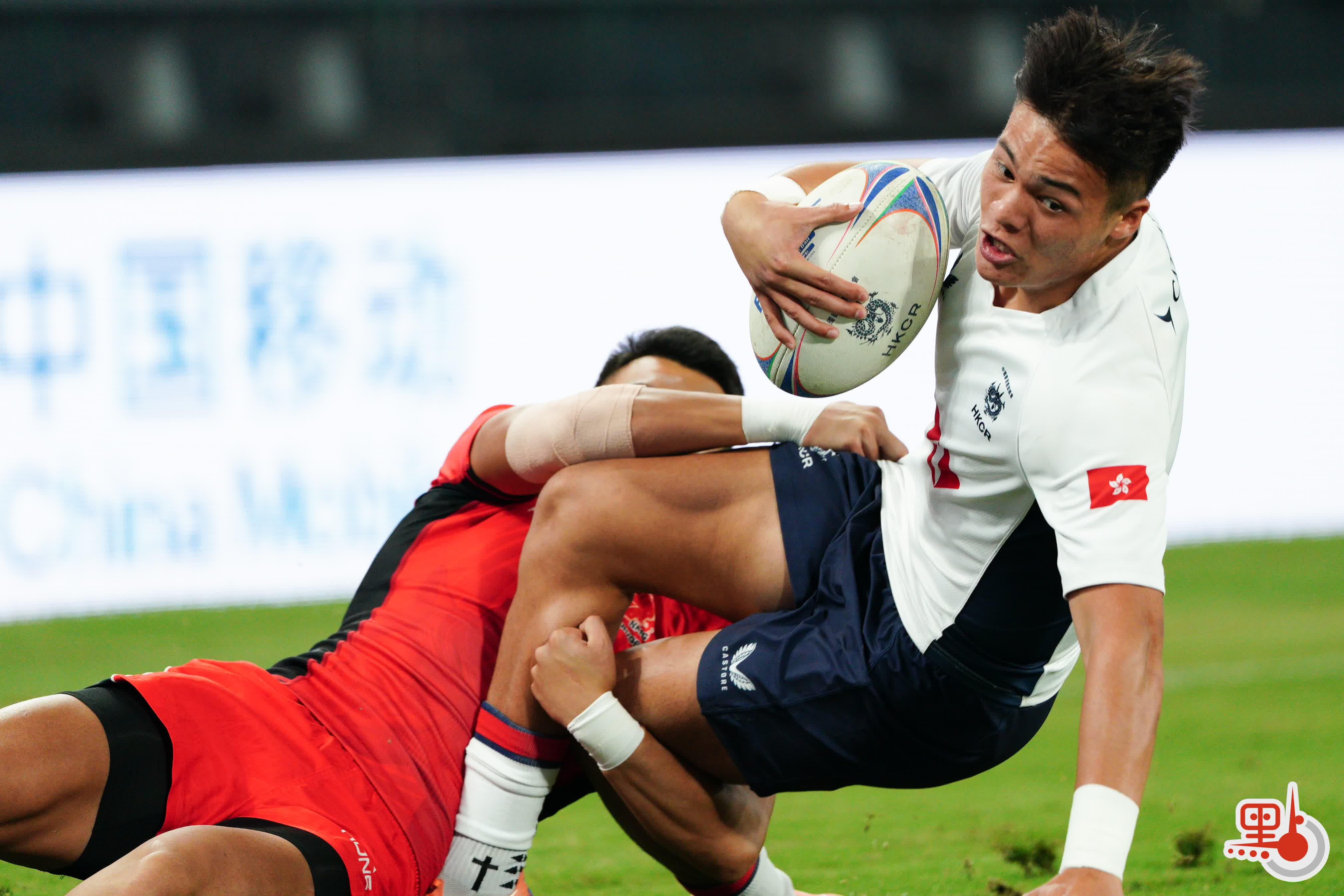上半場開場不到1分鐘,香港隊12號球員房傑鋒達陣得分,9號球員拜恩菲立斯成功追加射門,先為隊伍拿下7分。其後內蒙古隊逐漸進入狀態,21號球員姚巴雅力嘎成功達陣,為隊伍追回5分。不過,香港隊球員持續發力,在完成2次達陣後,拉大兩隊的比分差距。在上半場結束時,香港隊以17∶5領先內蒙古隊。