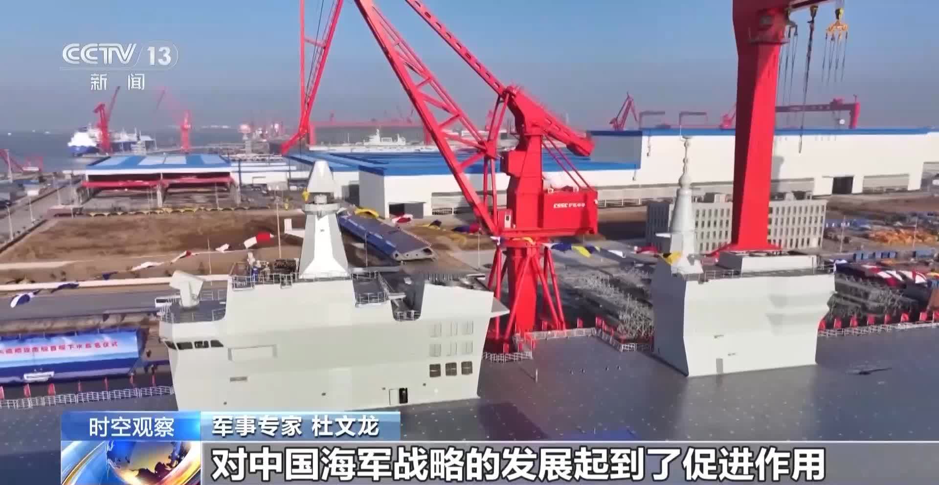 軍事專家杜文龍:076型兩棲攻擊艦不僅可以攜帶重型戰鬥艦載機完成作戰任務,還可以通過電磁彈射多種戰鬥型的無人機完成作戰任務。所以從艦載機的種類、規模,包括出動強度和作戰任務去分析,和準航母大致相同。