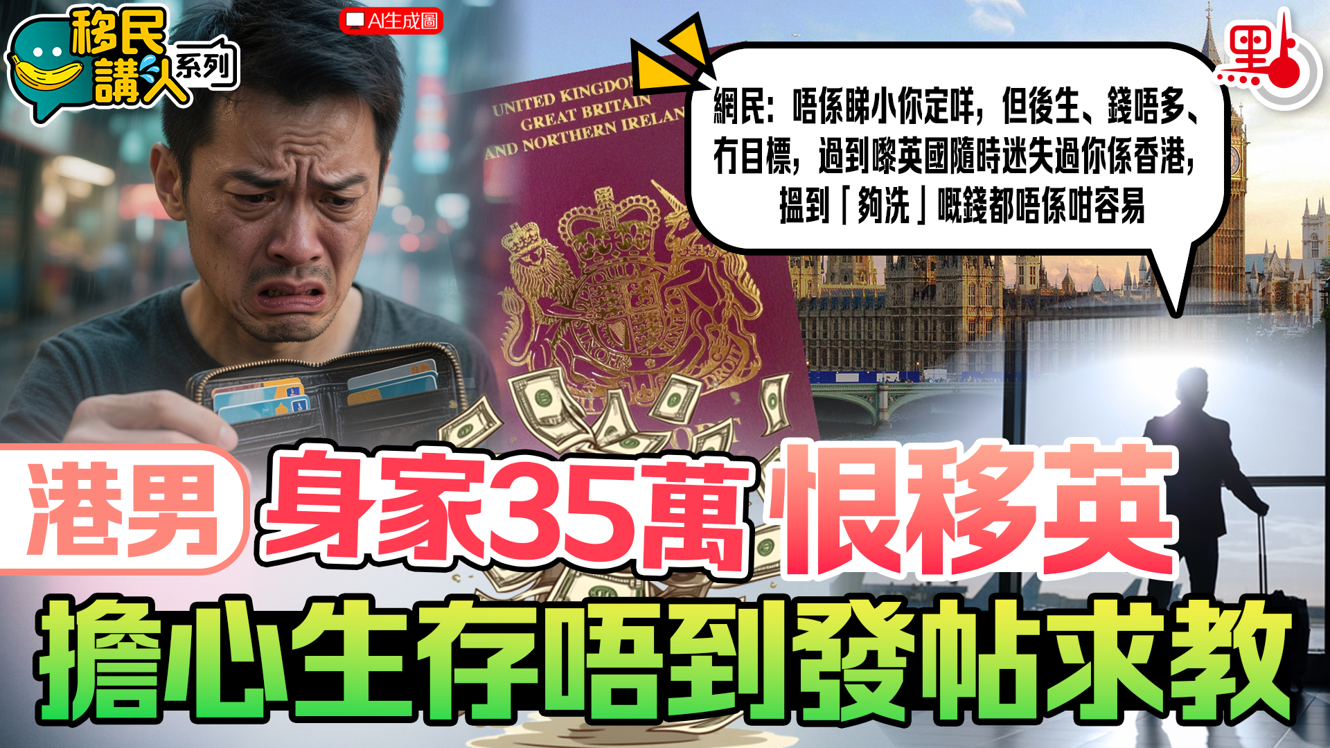 移民講人系列|港男身家35萬恨移英 擔心生存唔到發帖求教