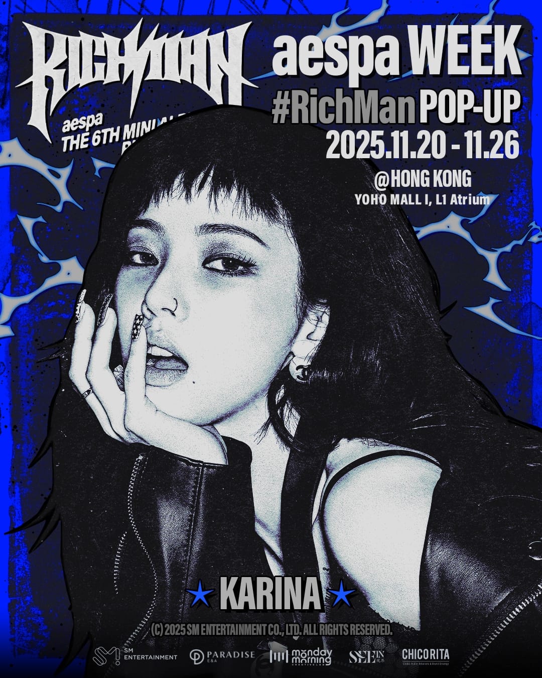【點新聞報道】韓國人氣女團aespa官方期間限定店「RichMan POP-UP @HONG KONG」將於11月20日至26日連續7天獨家登陸YOHO系商場。快閃店以aespa全新迷你專輯《Rich Man》為設計核心,售賣包括服飾、公仔掛飾、以及小卡等多款官方周邊。場內亦布滿aespa成員的型格造型海報,瀰漫超酷炫的搖滾氛圍,令每個角落都是MYs的IG worthy打卡點。此外亦有滿額隨機小卡贈送,MYs即睇以下活動資訊!