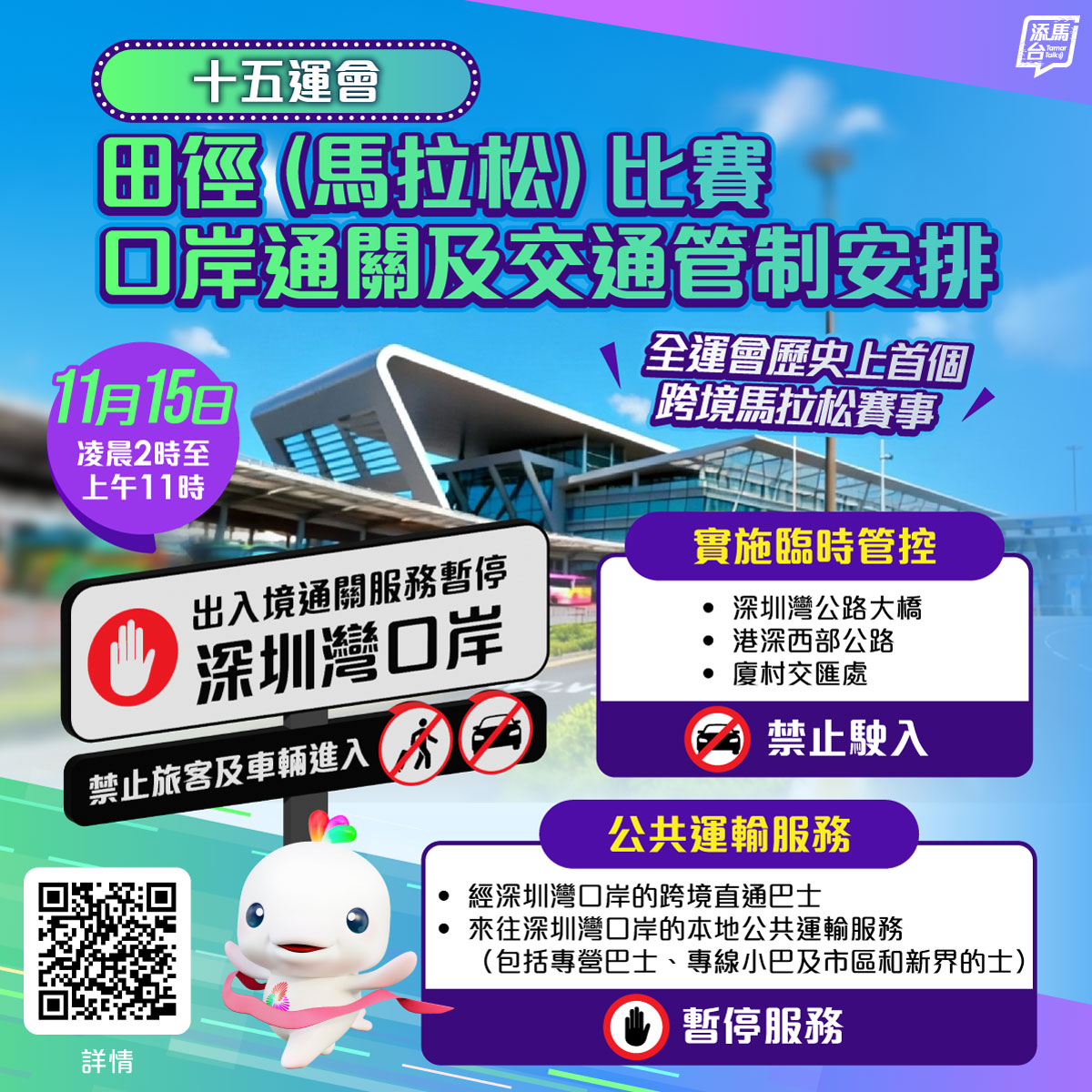 本屆全運會馬拉松項目非常特別,這是全運會歷史上首個跨境馬拉松賽事。比賽途經深圳南山區、前海自貿區和香港元朗區。