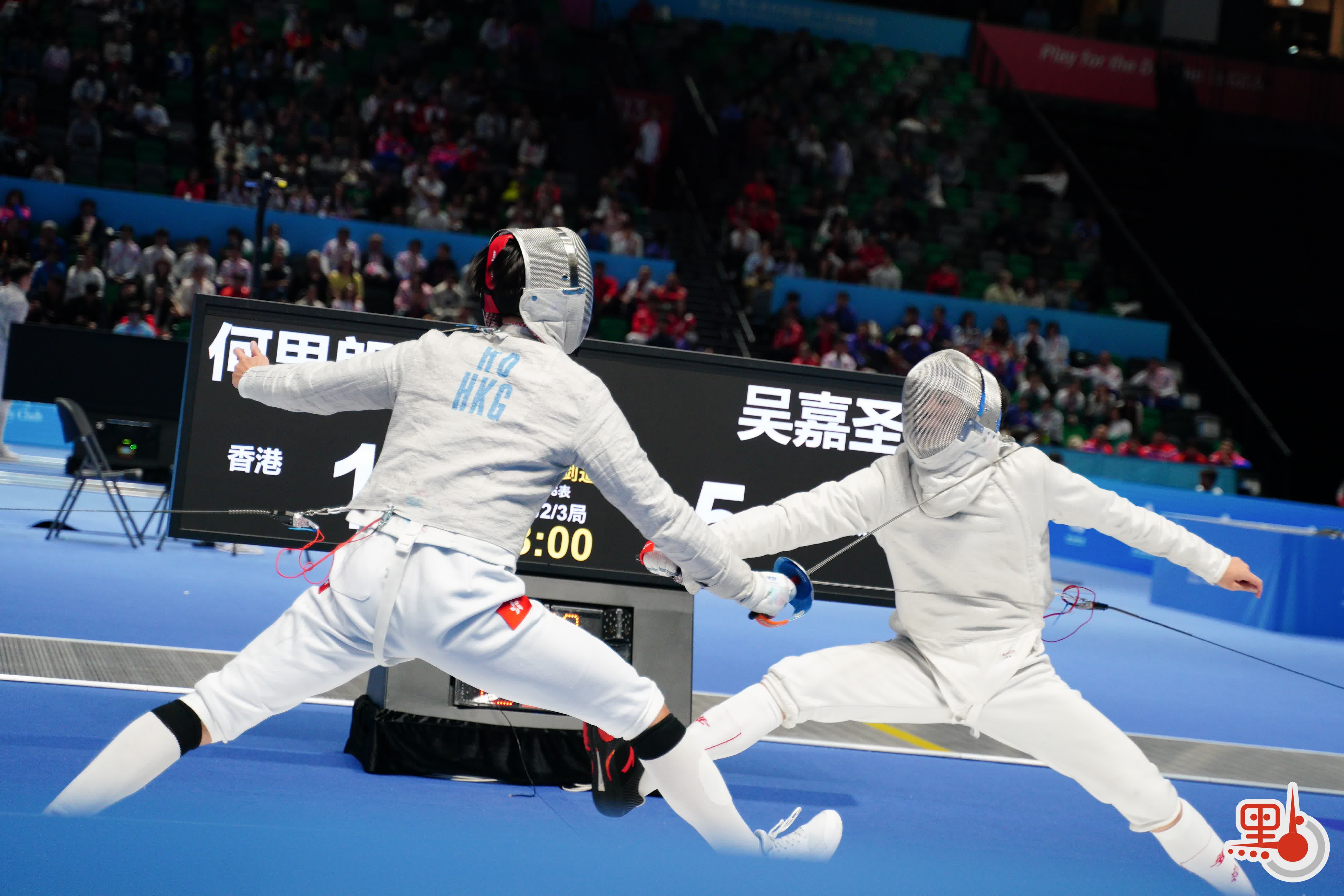 全運會男子佩劍16強賽場上,兩名港將何柏霖及何思朗均順利殺入8強。