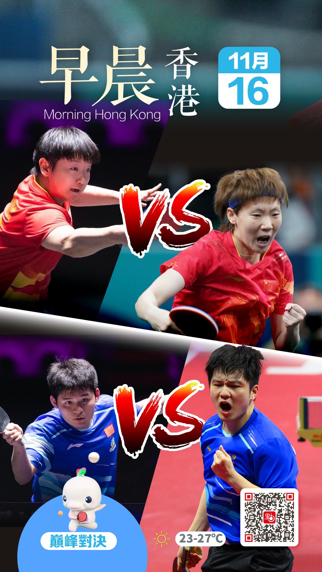 女單方面,在昨日(11月15日)進行的半決賽中,河北隊孫穎莎以4比1戰勝澳門隊朱雨玲,順利晉級。她將在決賽中與王曼昱爭奪金牌,比賽將於今日21時15分開始。