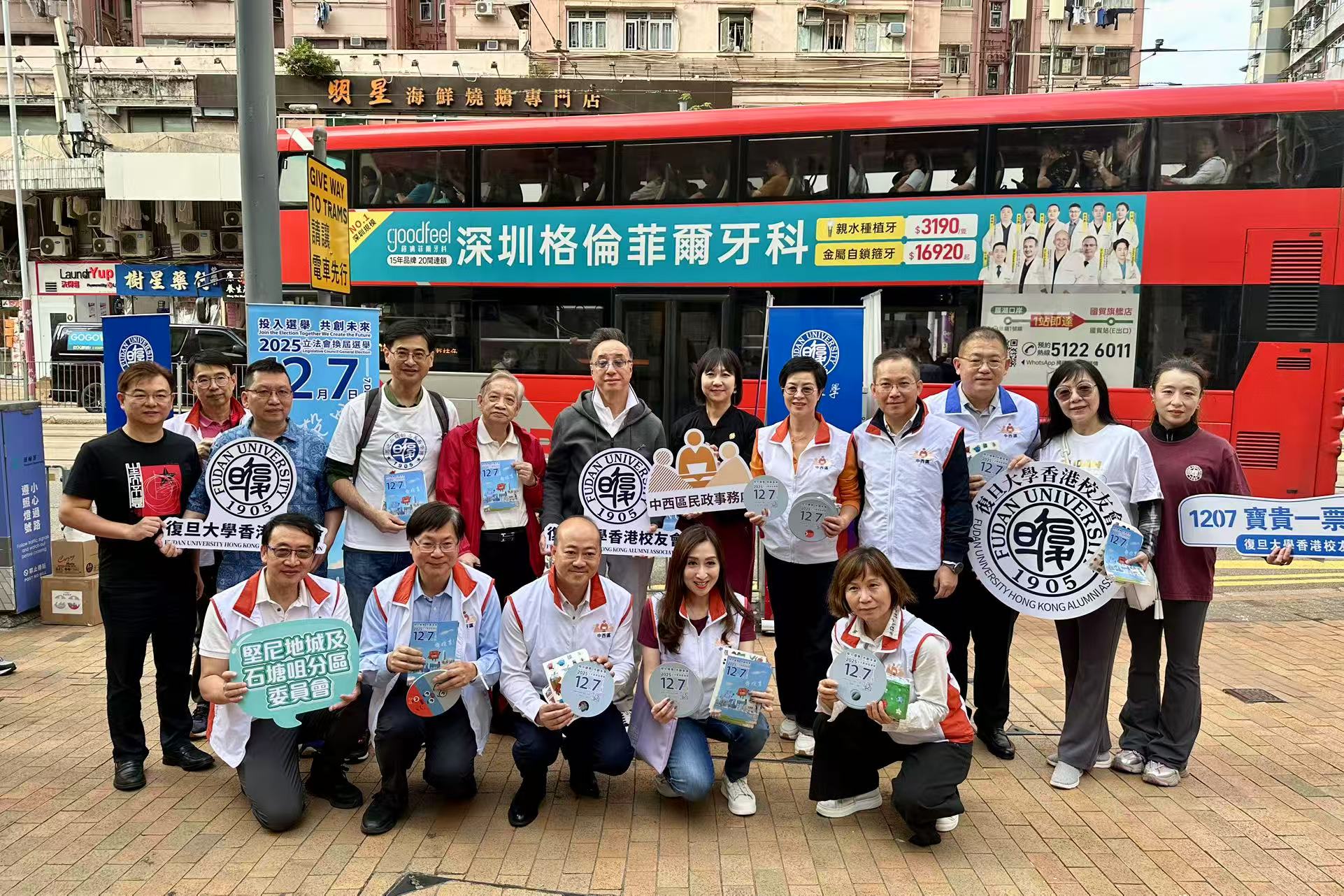 全國政協委員、復旦大學香港校友會會長屠海鳴表示,復旦大學香港校友會是一個愛國愛港的新興組織,校友骨幹們昨日下午匯聚中西區,自覺派發「12·7」香港第八屆立法會選舉宣傳單張,呼籲選民為香港發展經濟、提升民生,踴躍投下神聖的一票。