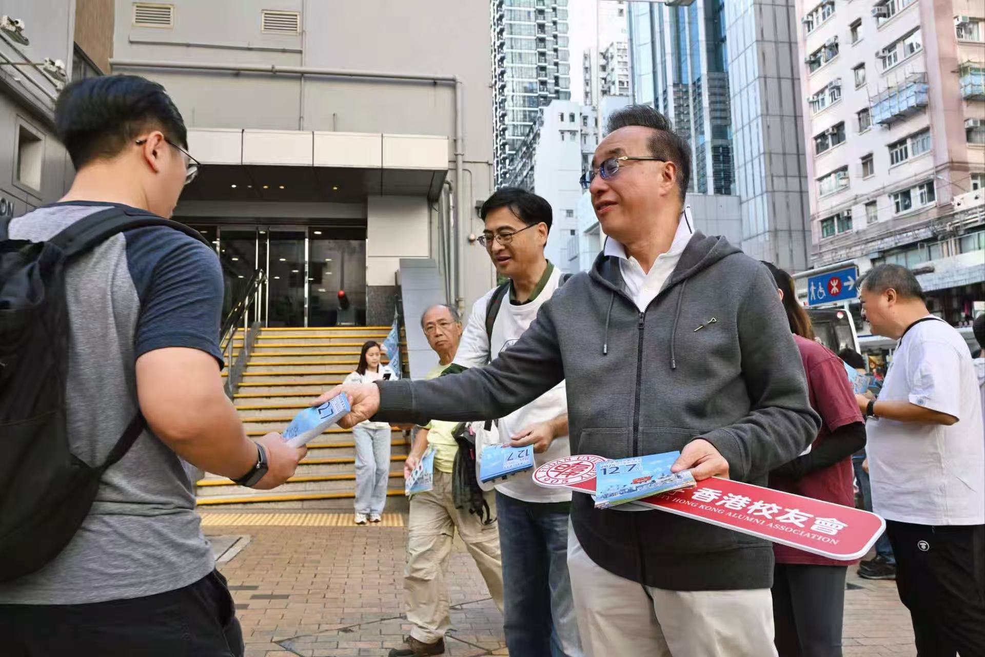 立法會選舉|復旦大學香港校友會街頭派宣傳單張 籲選民12·7踴躍投票