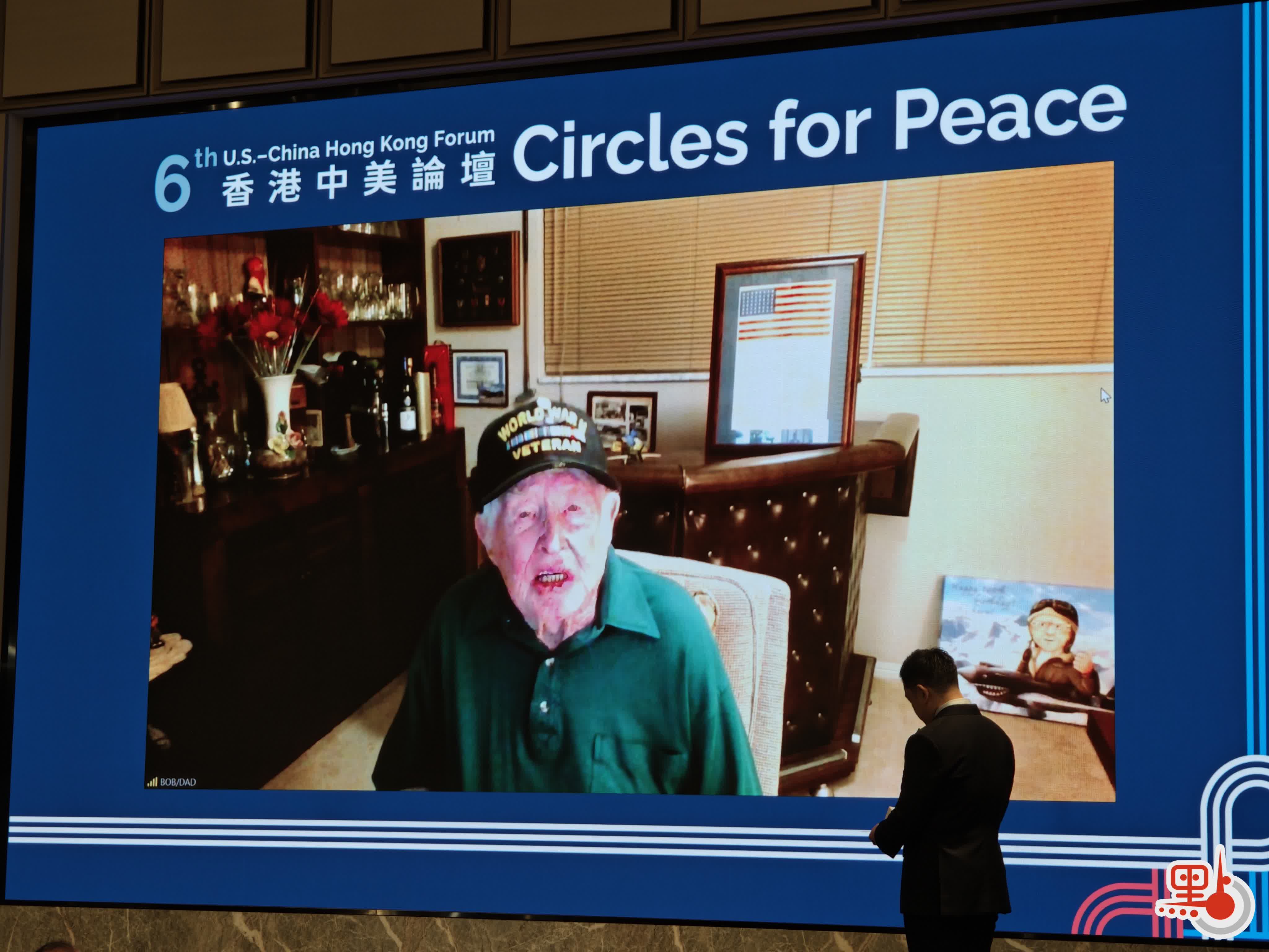 論壇以「共築和平之環」主題開場,在現場視頻連線了已經101歲的飛虎隊老兵Robert Moore。Moore回憶,在他執行的96次飛行任務中,「團隊的作用無可替代」,運送物資的飛機引擎還未熄滅,他的中國戰友已在全力卸貨。如今世界存在着海平面上升、洪水等災害,他強調團隊作用無可替代,「相比單個國家,團隊協作能更有效地應對這些挑戰」。