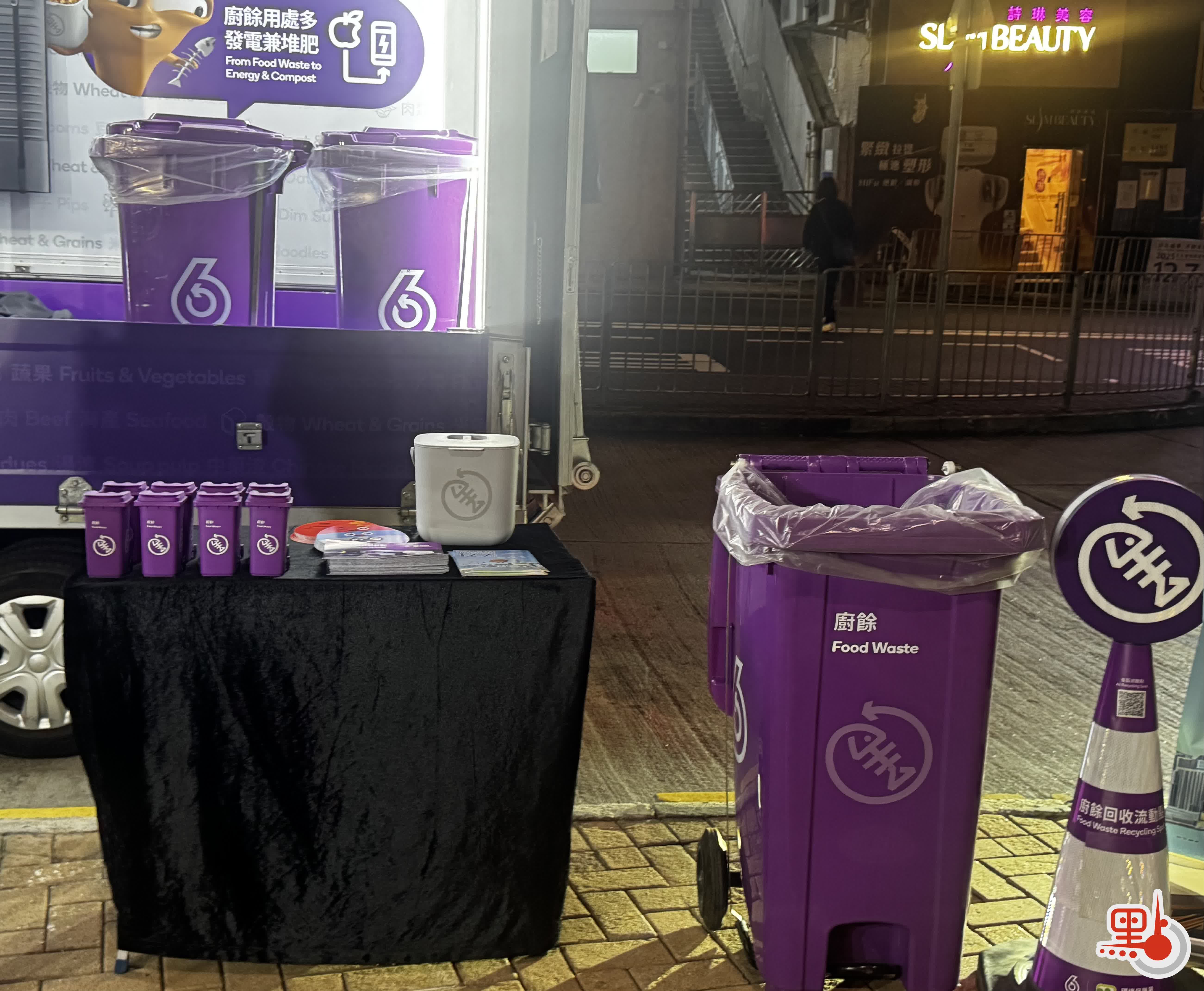 然而,有些市民居住在單棟樓或者「三無」大廈,沒有空間放置固定回收桶,環保署便特地設立了大約250個公眾回收點,其中有104個是「夜間廚餘流動回收點」,每晚在民居和食肆附近運作,等市民收工後,都可以順手丟廚餘,慢慢養成習慣。