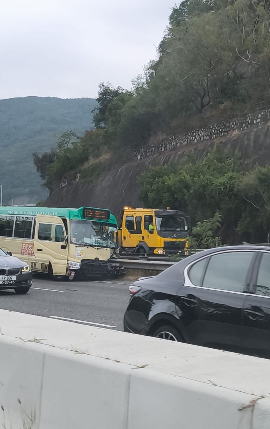 青衣西北交匯處綠VAN撞防撞欄 司機乘客6人傷