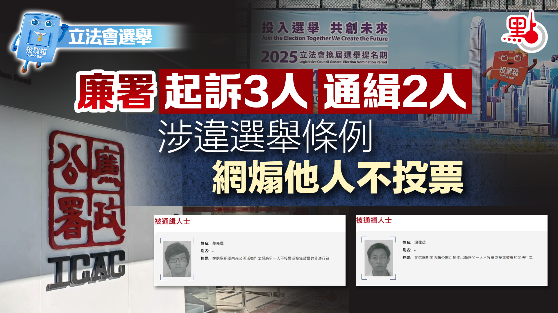 立法會選舉|廉署起訴3人通緝2人 涉違選舉條例網煽他人不投票
