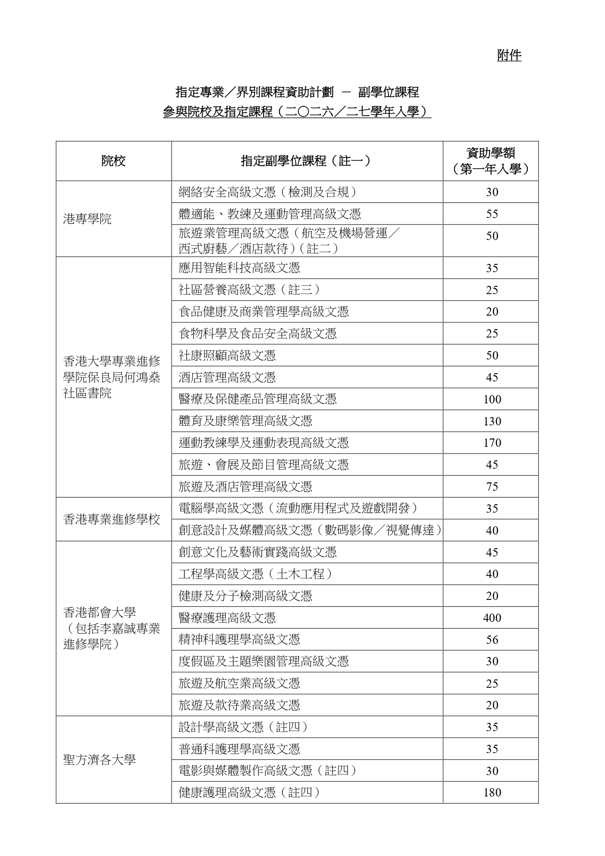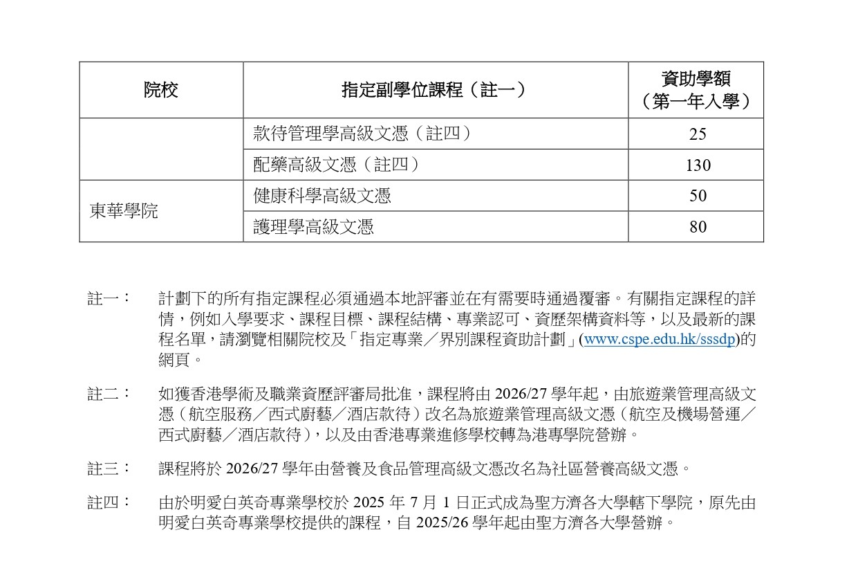 【點新聞報道】教育局今日(20日)公布,2026至27學年指定專業/界別課程資助計劃將資助2131個學額,供學生修讀6所專上院校共32個副學位課程。