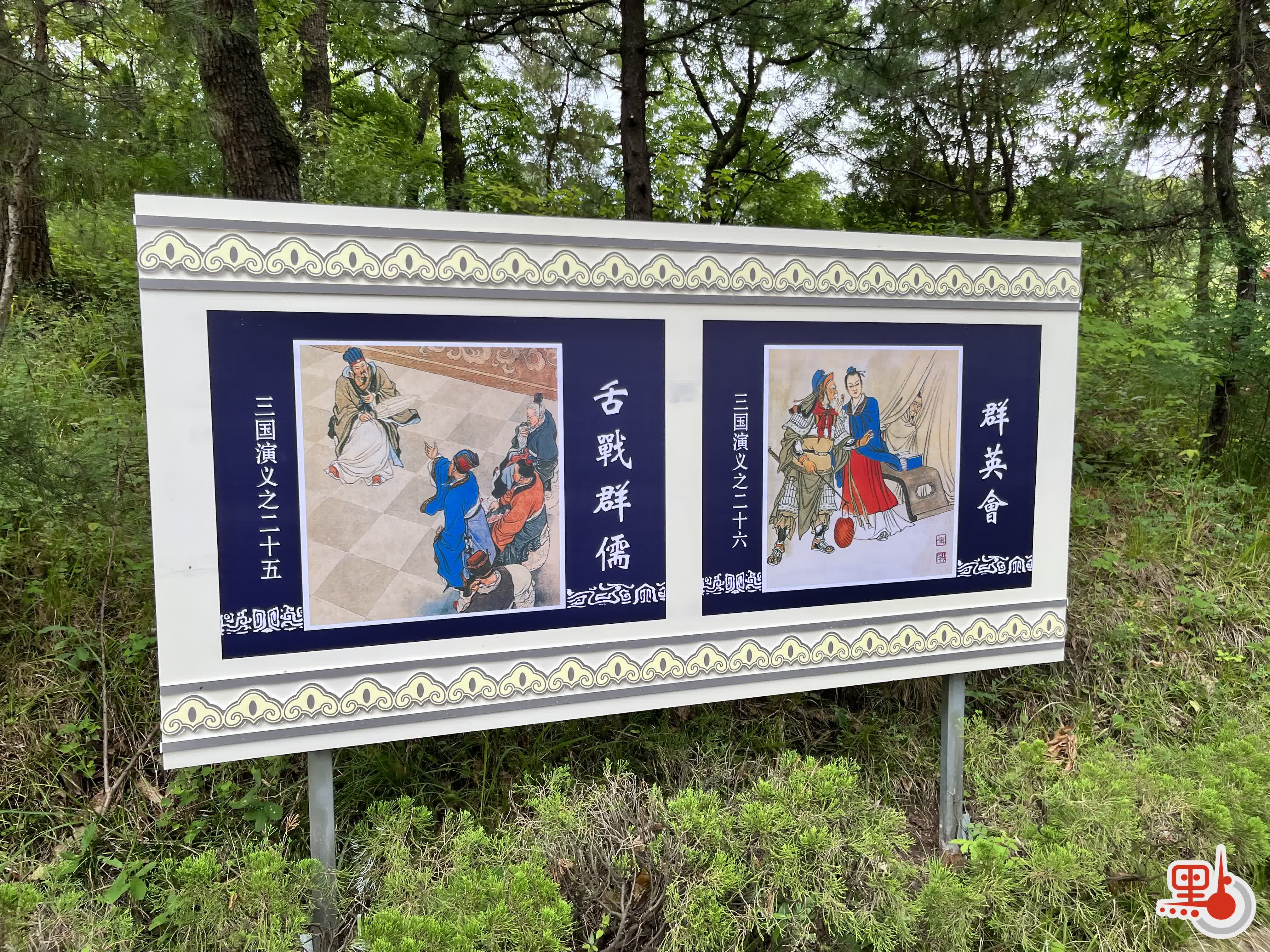 勉縣武侯墓比姜維墓正式隆重的多,這裏有門衛,需要購買入場券,成人票60元人民幣。墓園打理的井井有條,人不多,放眼望去就三兩個。入口處種植了鮮花綠植,沿着小徑立了一個個介紹三國的牌子,上面畫了栩栩如生的圖畫和簡短的介紹,我一個個的看過去,終於走到了墓前。
