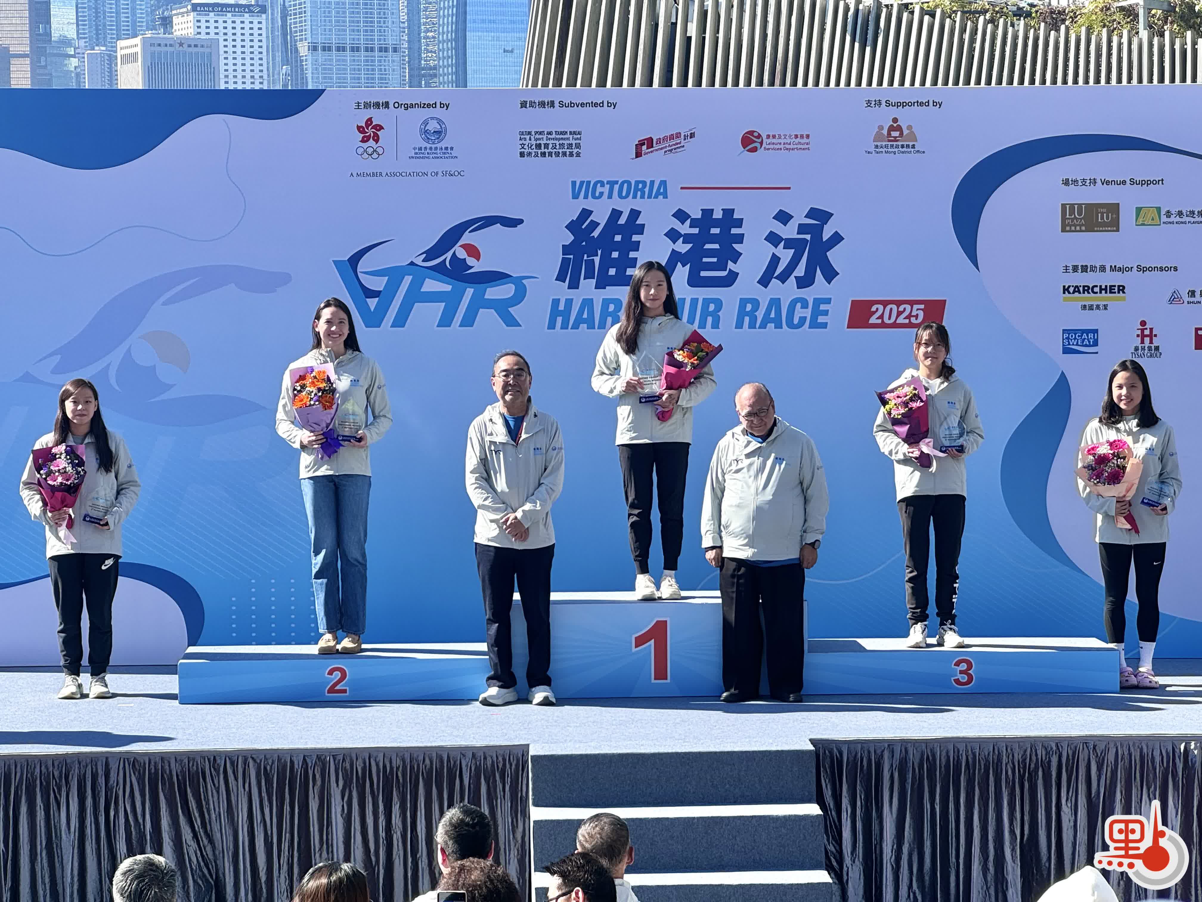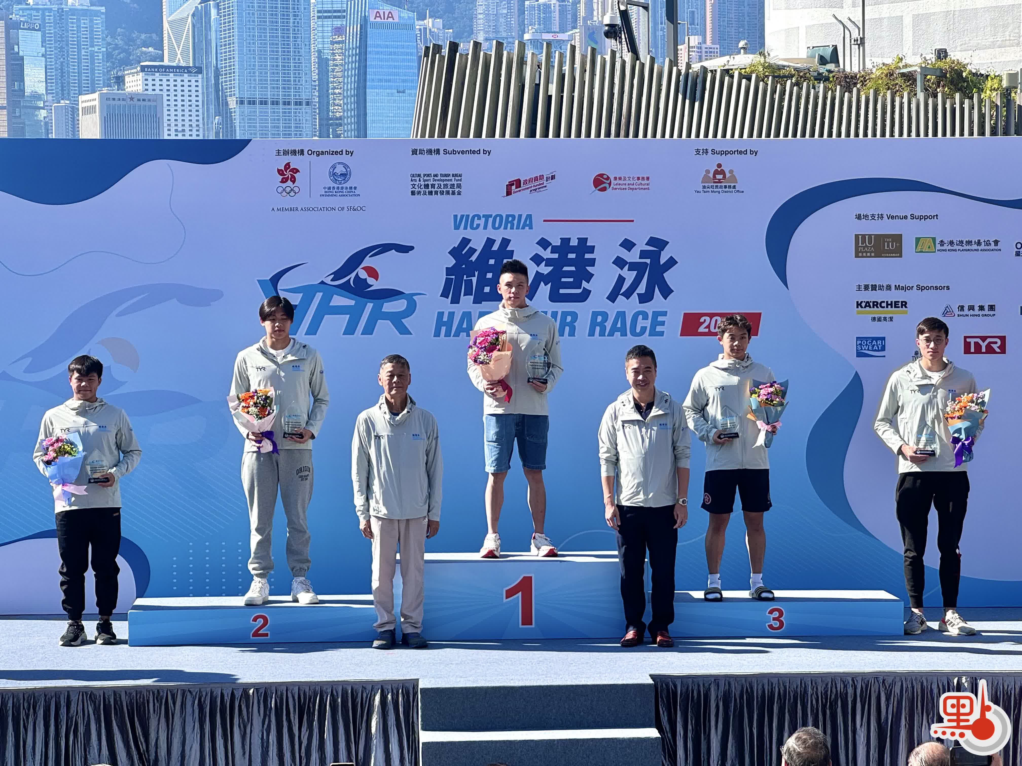 【點新聞報道】由中國香港游泳總會(泳總)主辦的年度體壇盛事「維港泳2025」今早(22日)順利舉行。頒獎儀式於上午10時舉行,主禮嘉賓為競賽男女子組前五名頒發獎牌和花束,眾人一齊慶祝比賽圓滿結束。