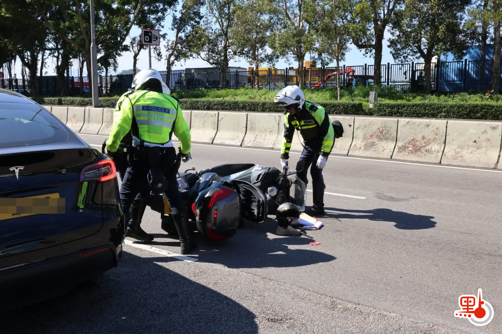 【點新聞報道】今日(22日)中午12時51分,一輛掛有「P牌」的Tesla電動車,在駛至堅尼地城城西道近堅尼地城游泳池對開,懷疑收掣不及與一輛電單車相撞,鐵騎士倒地受傷昏迷。