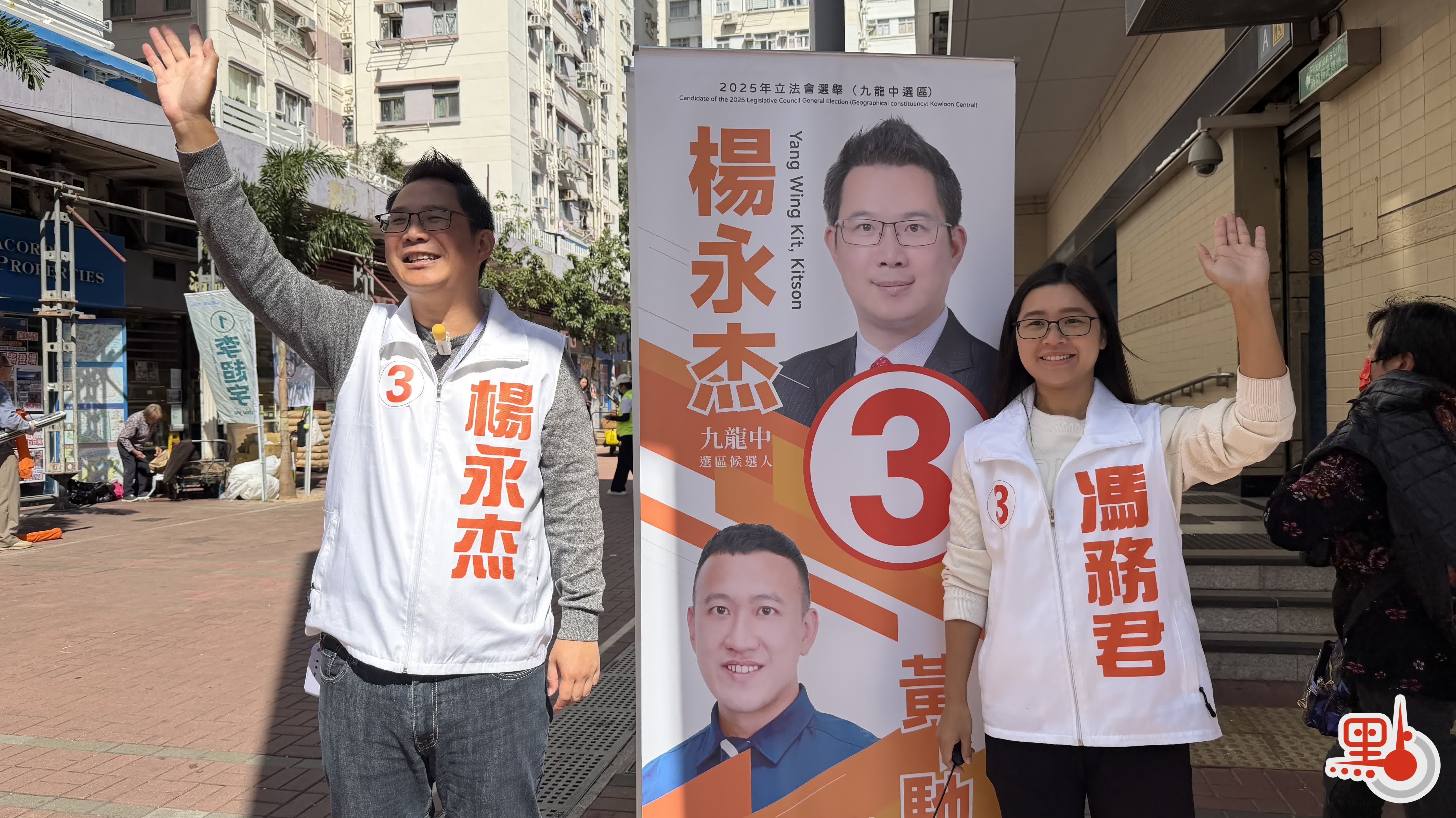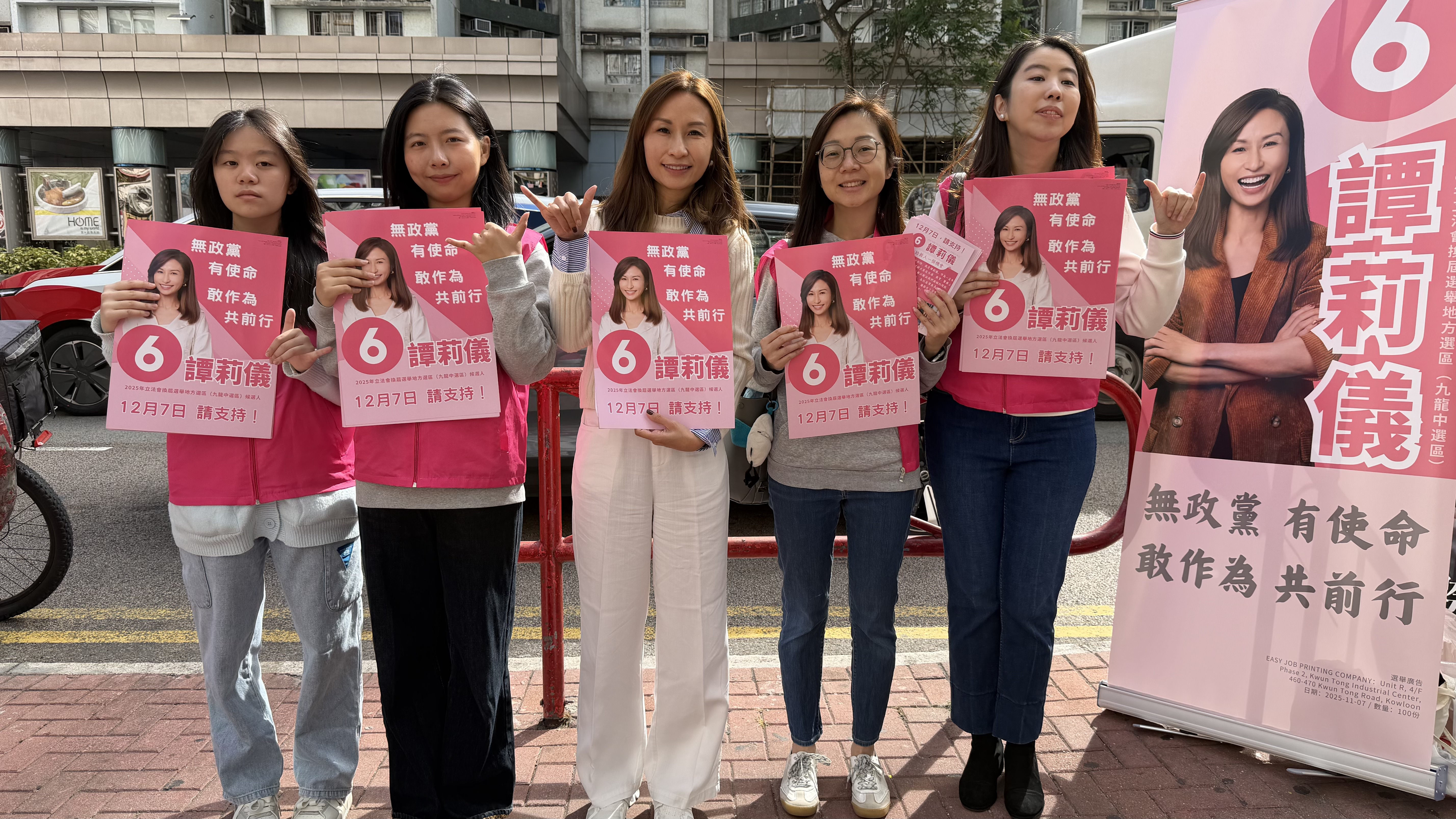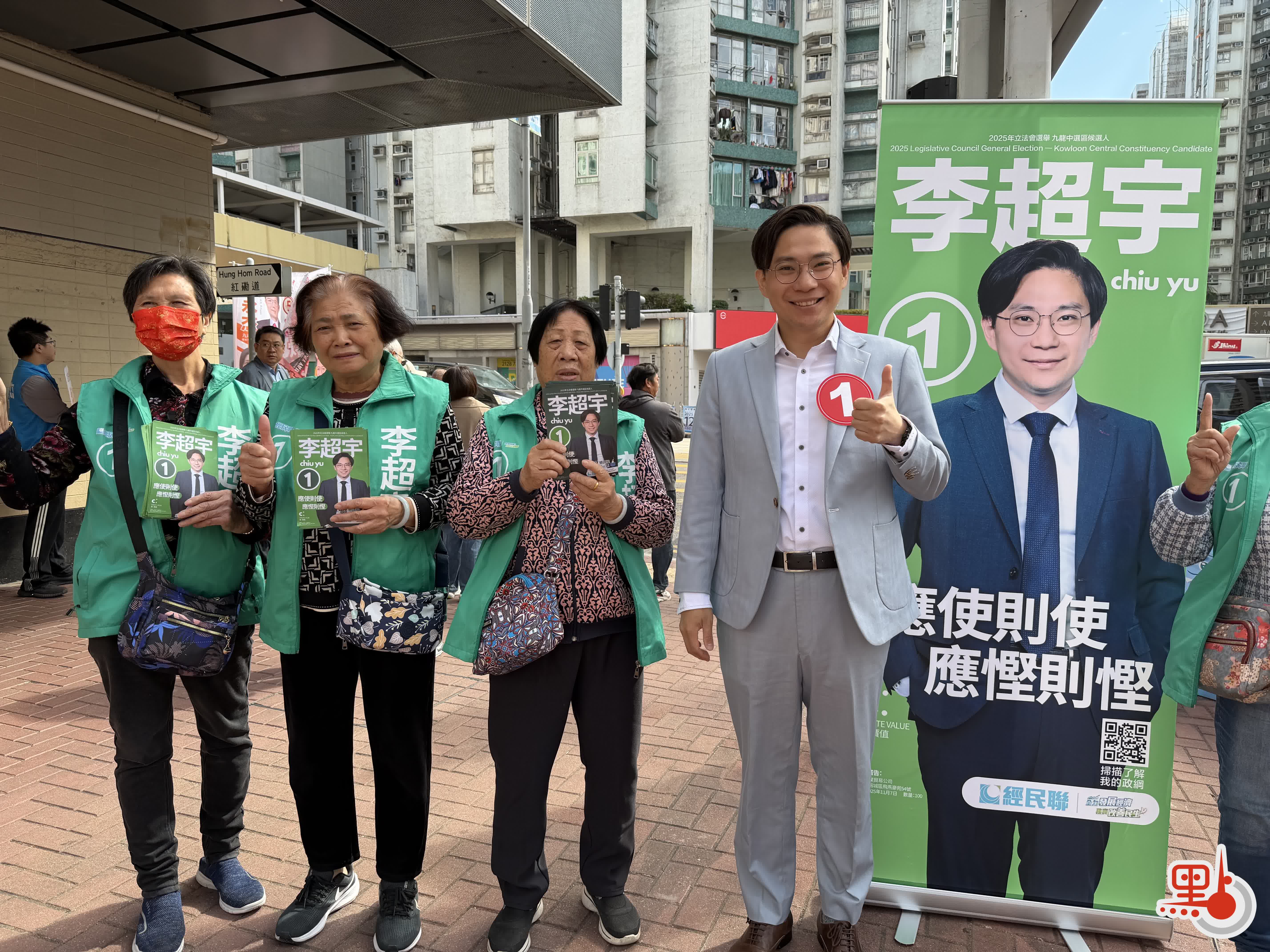 【點新聞報道】新選制下的第八屆立法會選舉中,九龍中地方選區共有6位候選人競逐兩席位,成為地區直選中選情最激烈的選區。今日(22日),6位候選人齊聚黃埔造勢,包括1號李超宇(經民聯)、2號楊諾軒、3號楊永杰、4號李慧琼(民建聯)、5號丘燿誠(工聯會)及6號譚莉儀。