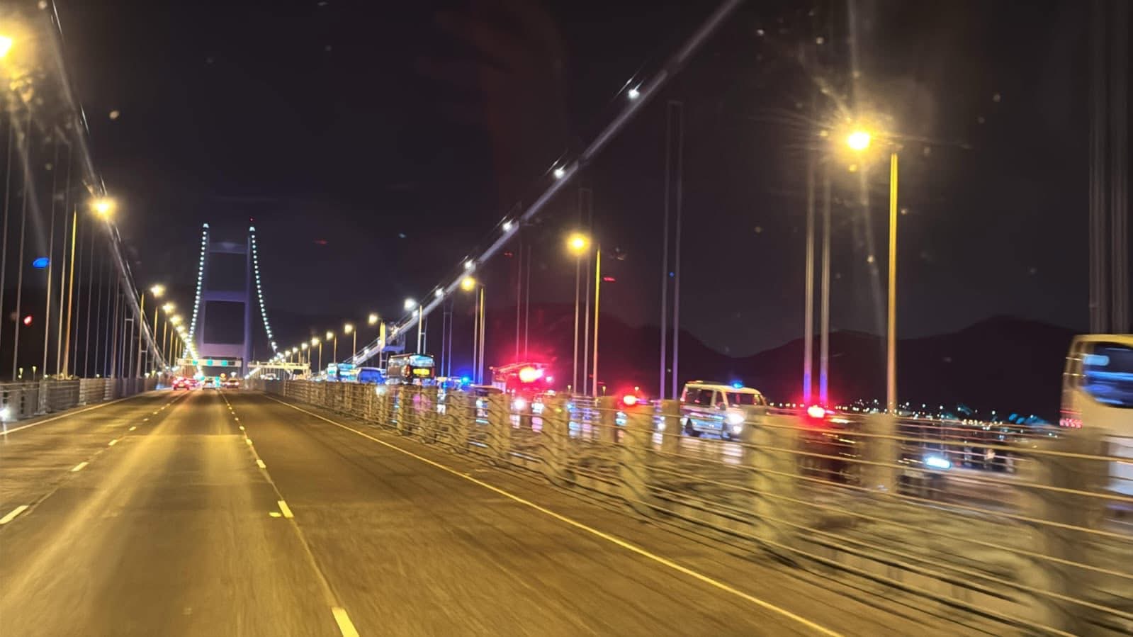 【點新聞報道】青馬大橋發生跳車事件。今晚(22日)7時47分,青嶼幹線青馬大橋往機場方向,有的士司機報案稱,有男乘客擅自在大橋跳車。警方消防接報趕至,該名男子已爬出圍欄,坐在大橋邊緣危險位置。至晚上9時,男子仍未返回安全位置,談判專家到場勸諭,亦有水警輪消防輪在橋下戒備。