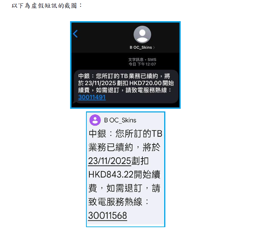 收SMS稱業務續約將扣款?中銀香港提醒屬虛假短訊慎防受騙