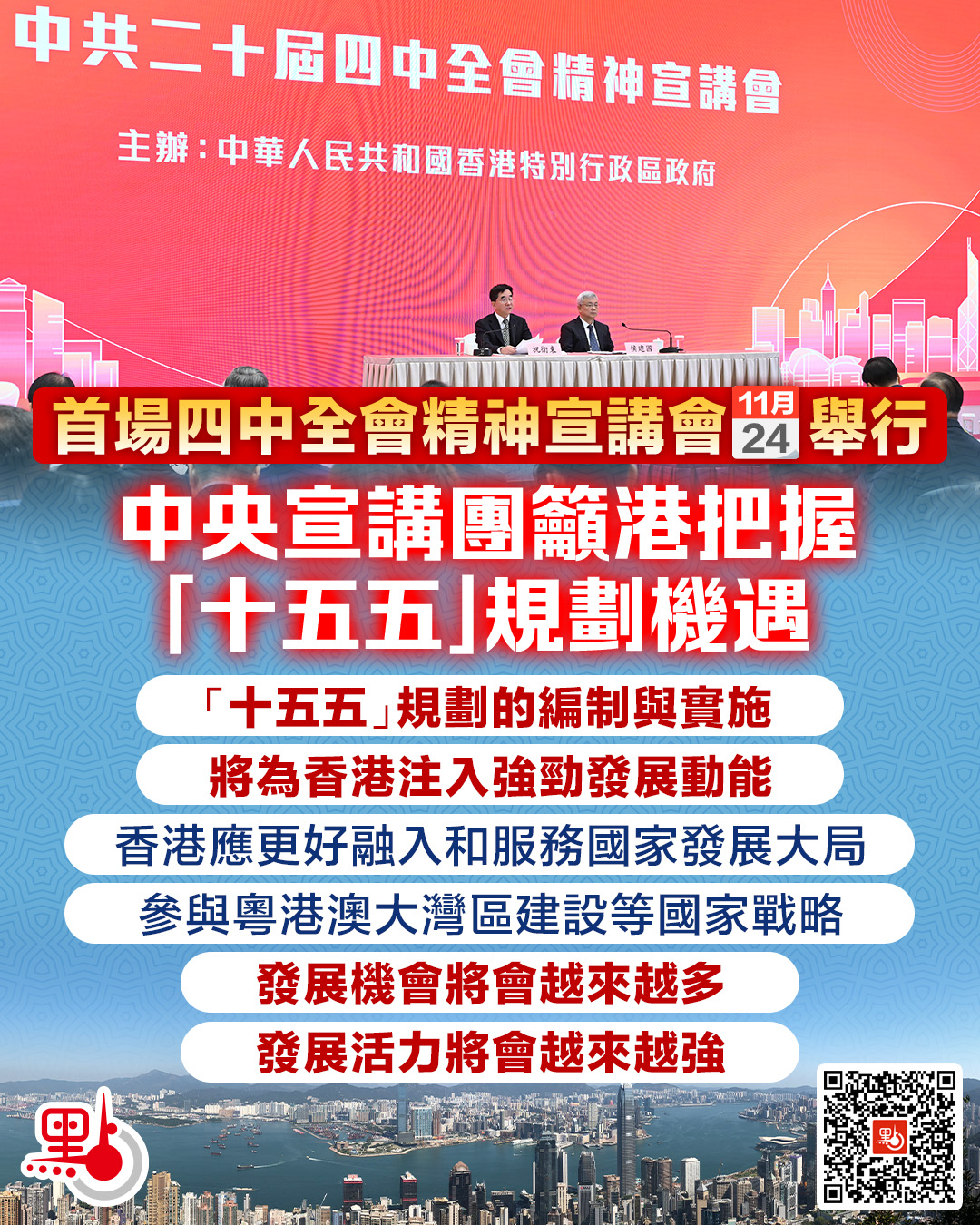 首場四中全會精神宣講會舉行 中央宣講團籲港把握「十五五」規劃機遇