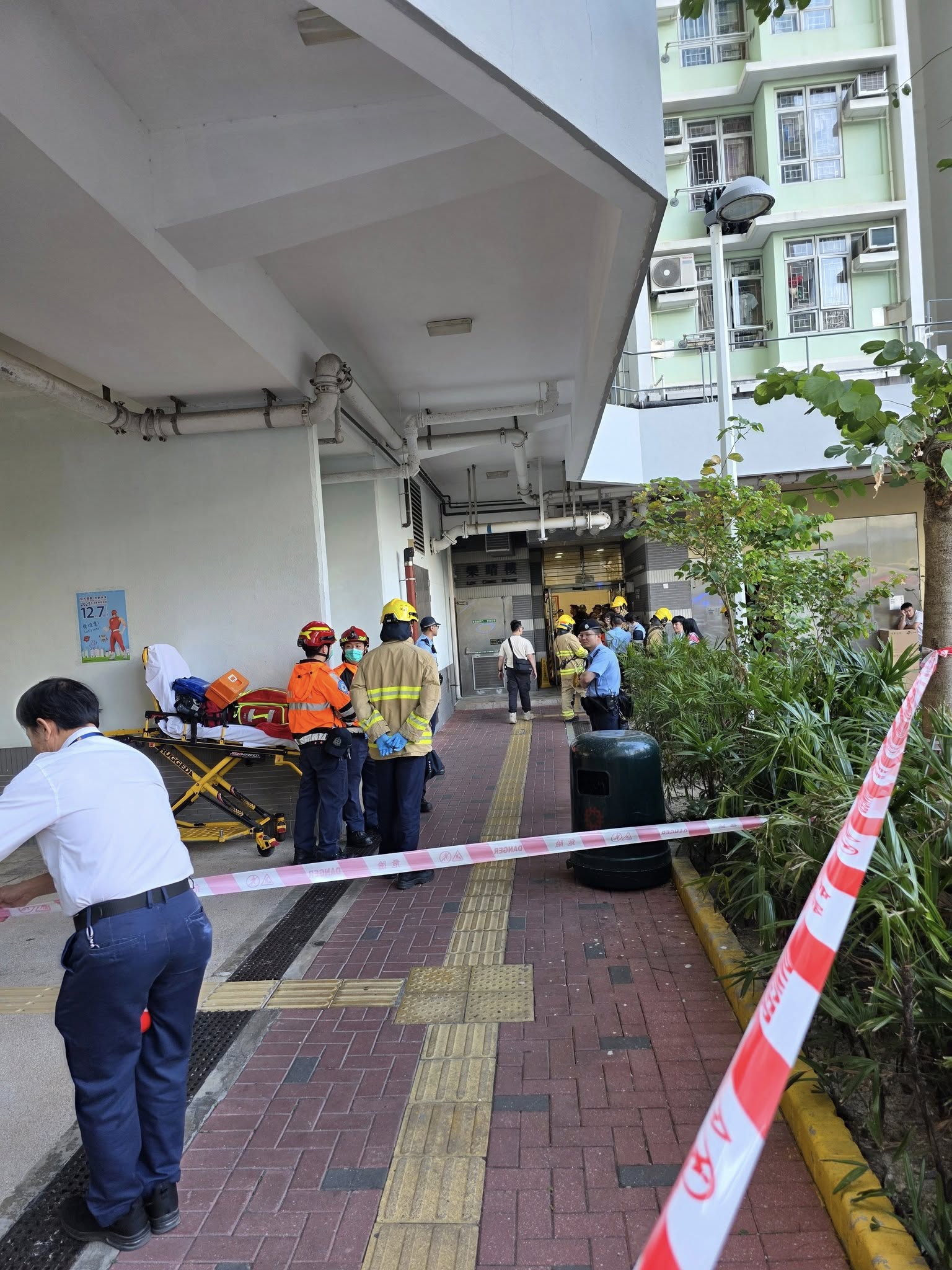(有片+多圖)九龍灣啟晴邨單位起火傳爆炸聲 近百居民疏散