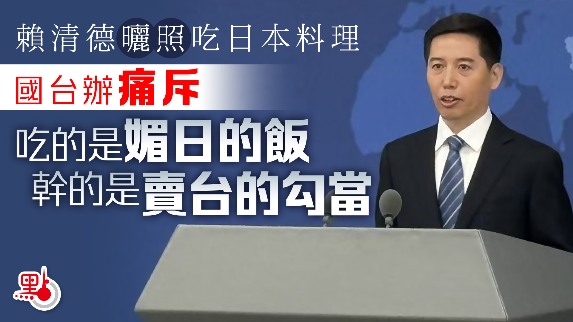 賴清德曬照吃日本料理 國台辦痛斥:吃的是媚日的飯 幹的是賣台的勾當