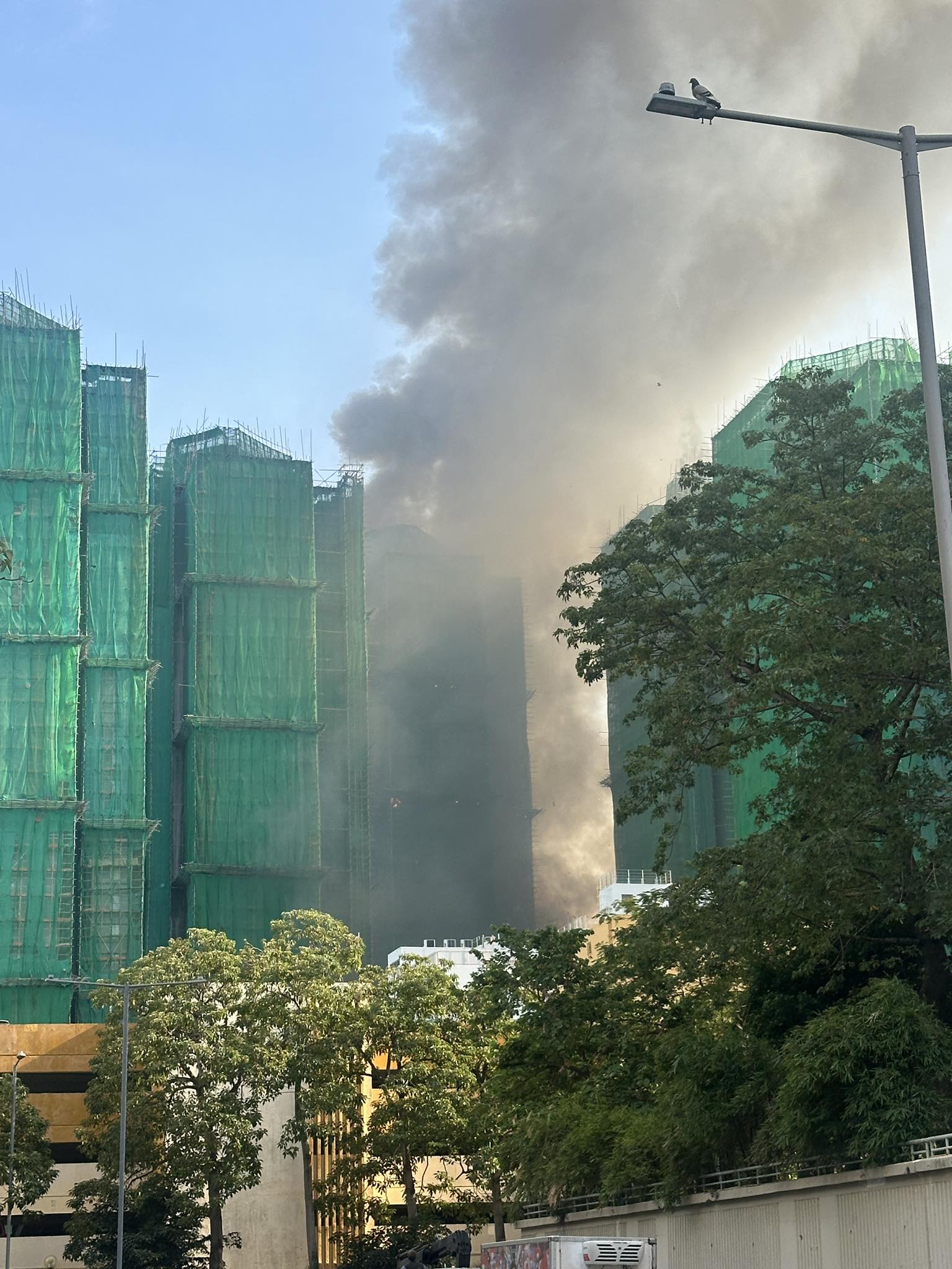 (有片)大埔宏福苑外牆棚架四級火 濃煙席捲半空