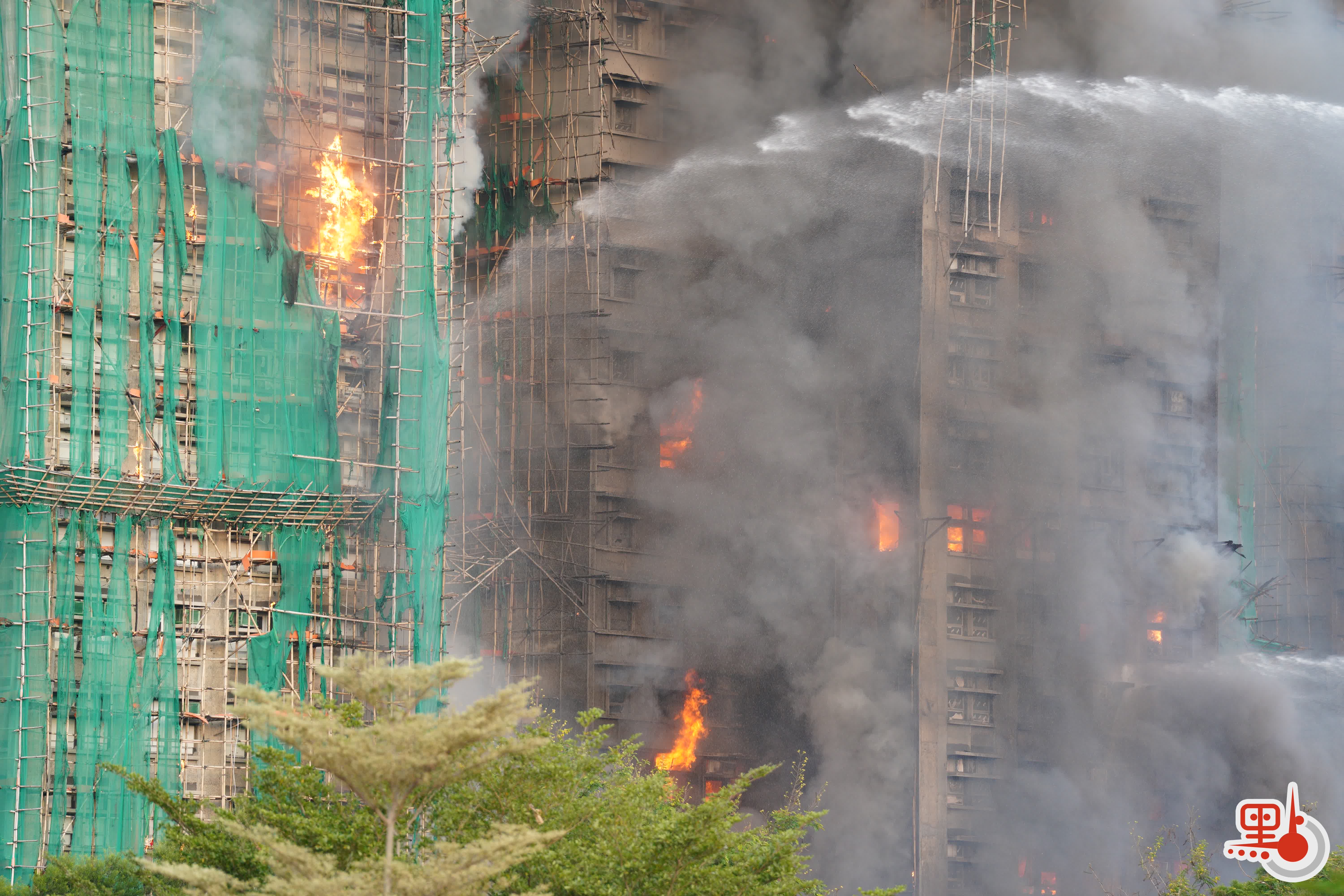 【點新聞報道】今日(26日)下午2時51分,大埔宏福苑發生嚴重火警,火勢迅速蔓延,並在短時間內連續升級。火警造成至少3人嚴重燒傷,另有多人被困。點新聞記者採訪大埔區區議員李文傑、梅少峰等人時,火勢已蔓延至其他大廈,區議員正與關愛隊緊急對接,協助居民登記家屬失聯情況。綜合多名區議員及TVB消息,截至發稿,現場火情已波及5到6座大廈。