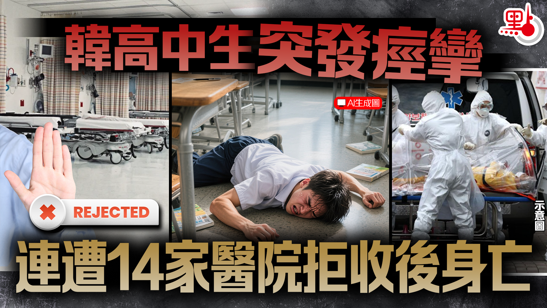 韓高中生突發痙攣 連遭14家醫院拒收後身亡