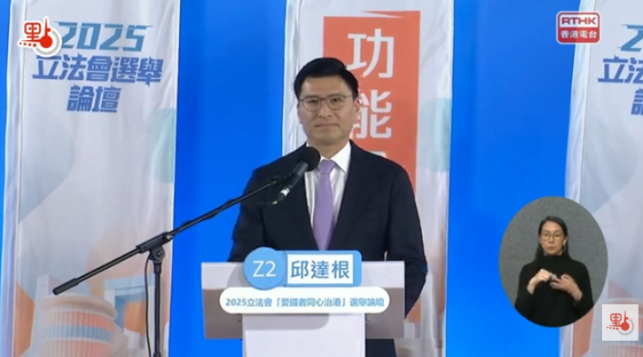 邱達根在回答「應對土地資源有限有何措施」時表示,香港須聚焦發展。他建議與大灣區實現優勢互補,如將研發環節留在香港,其他環節可延伸至大灣區。此外,應重點發展人工智能、機器人、生命科技等佔用土地較少的產業,並積極善用北部都會區的發展潛力。