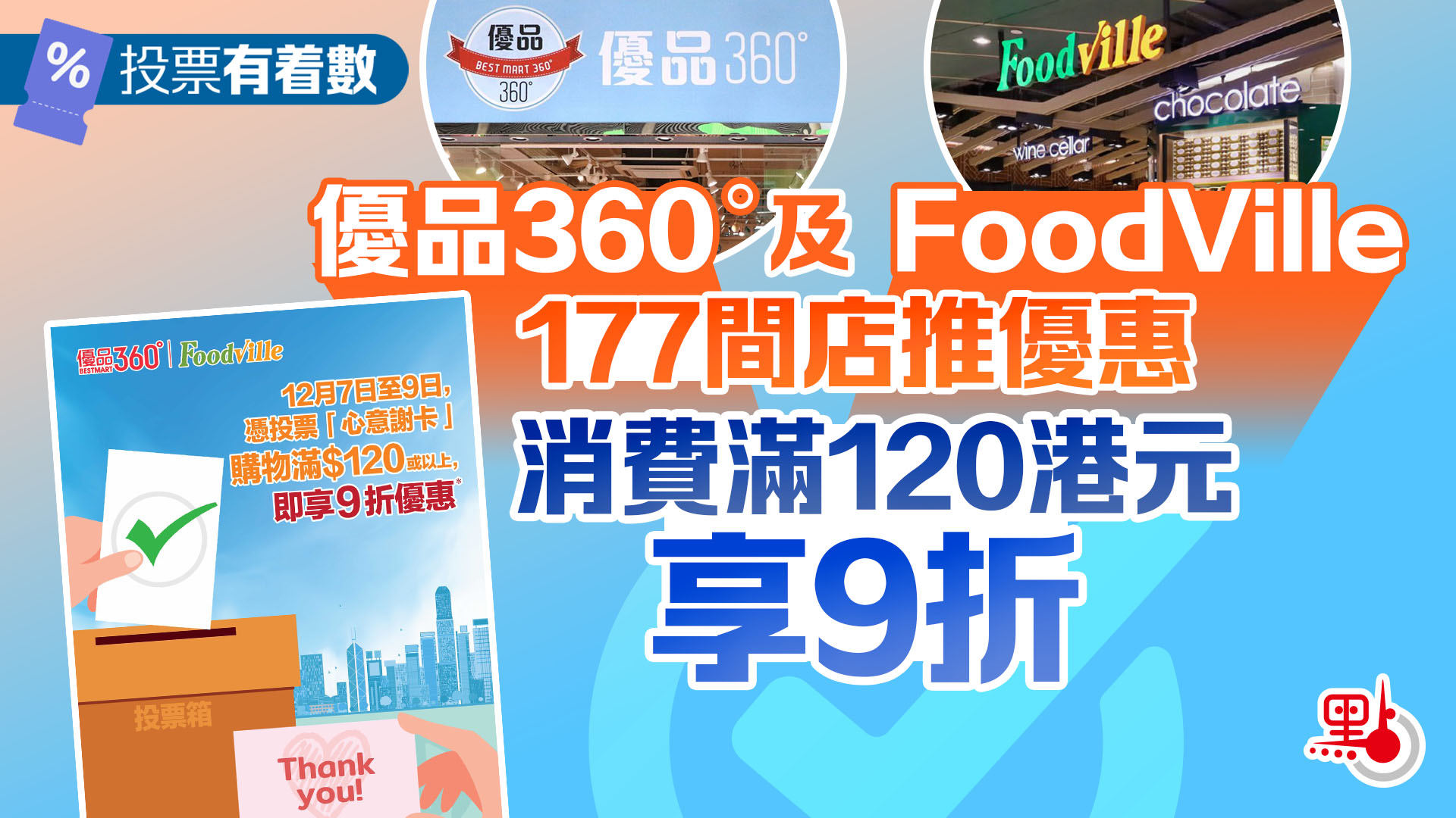 投票有着數|優品360˚及FoodVille177間店推優惠 消費滿$120享9折