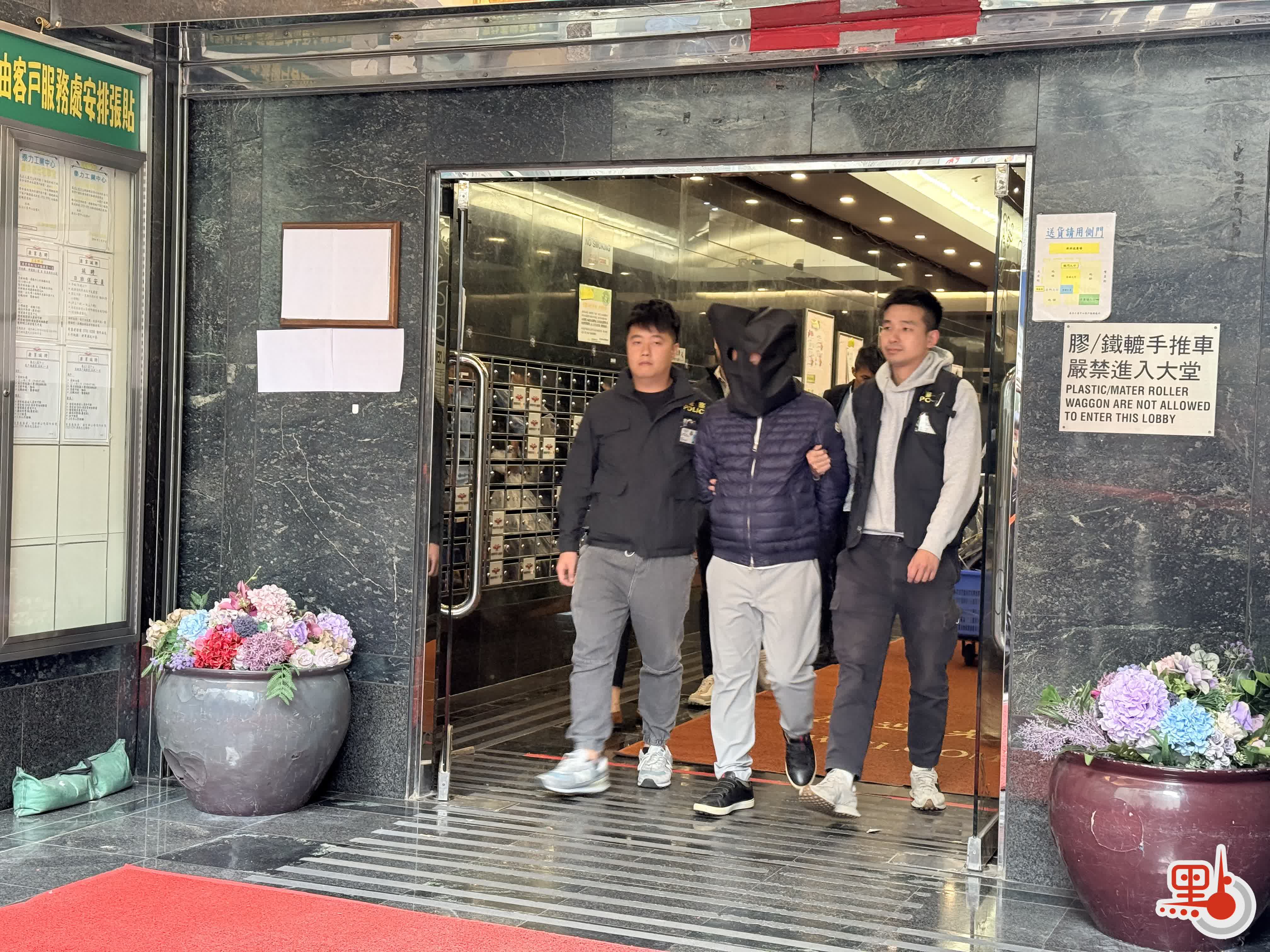 至今日(27日)早上8時許,警方到工程公司位於新蒲崗的寫字樓調查搜證,可見已檢取大量文件,相信準備帶走作進一步調查,其後以黑布蒙頭帶走一名男子。