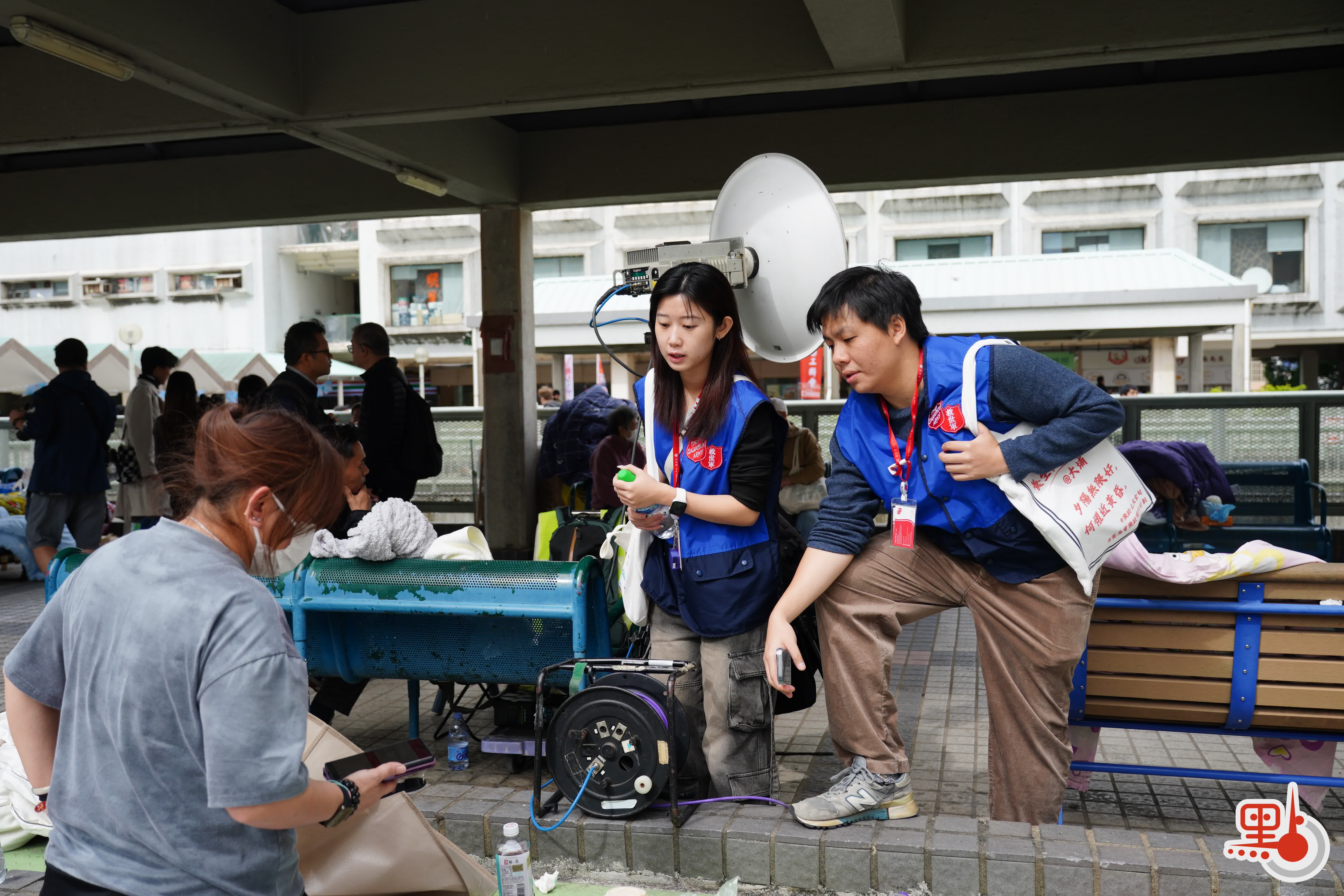 點新聞記者現場所見,今日(27日)上午,許多街坊紛紛送抵冬衣、棉被、瓶裝水、食品等物資,幫助及救援庇護居民。避難中心的民眾亦相互安慰相互支持,共渡時艱。