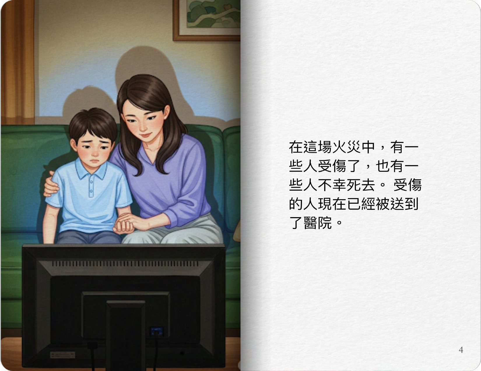 指南建議,家長首先需幫助孩子接納與確認情緒,給予耐心陪伴。同時,維持規律作息及過濾重複、驚悚的災難畫面,能有效鞏固孩子的安全感。指南亦指,家長可將焦點從「災難」轉移至「救援與互助」,多提及消防員、醫護等「幫手」的努力,以建立希望感。