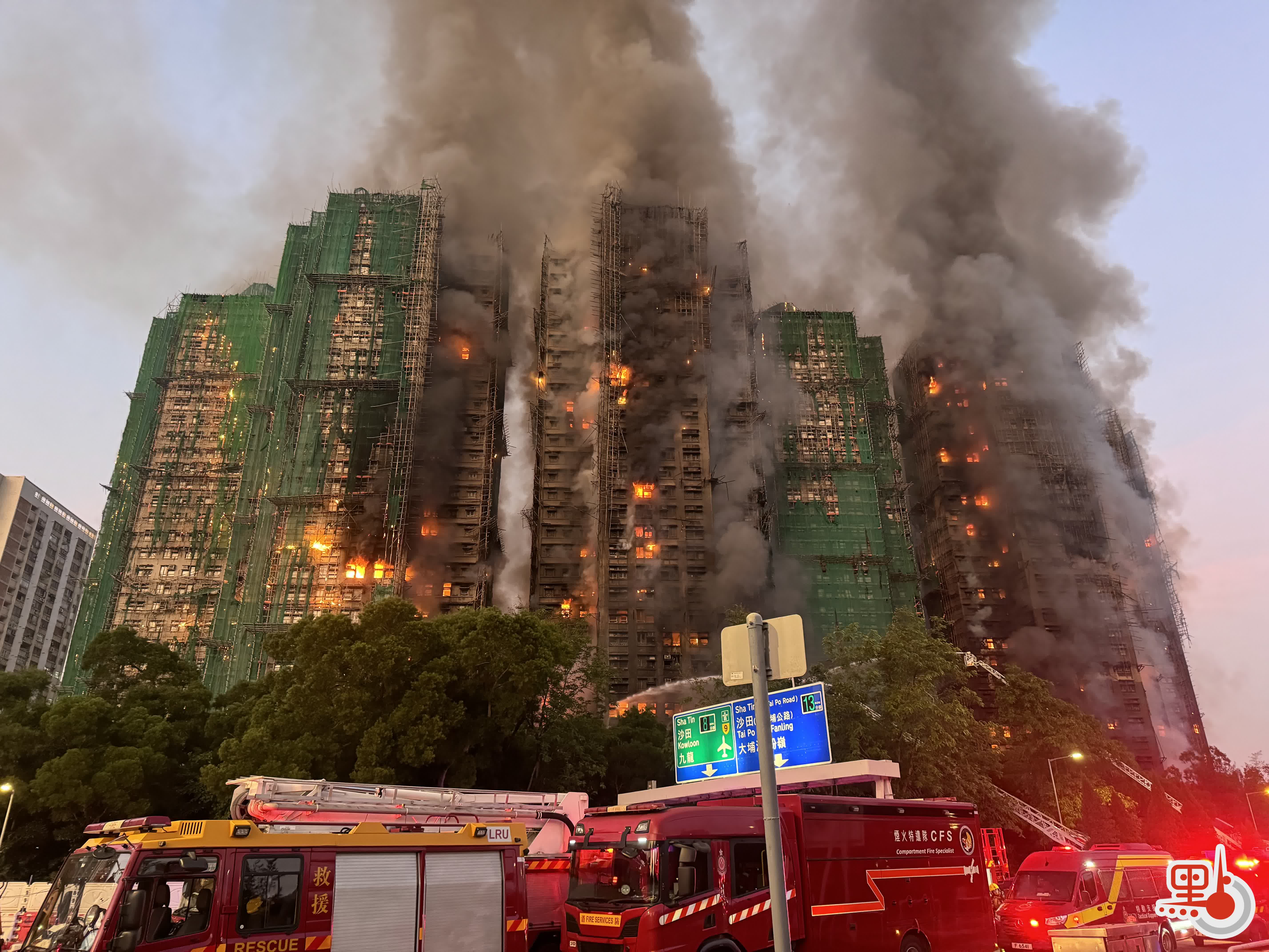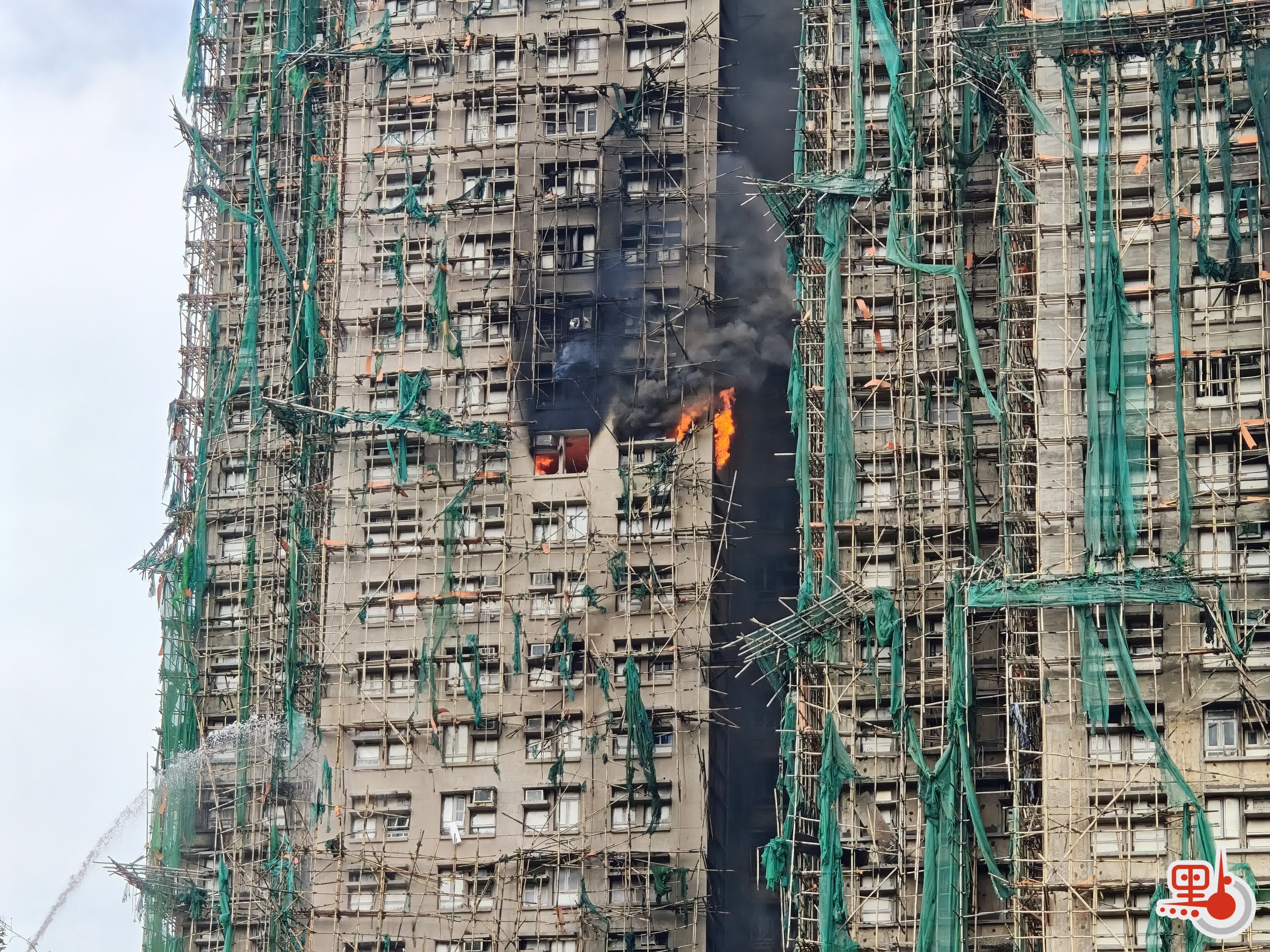 (多圖)宏福苑五級火|宏道宏盛宏新突現火舌 竹架燒斷掉落地面