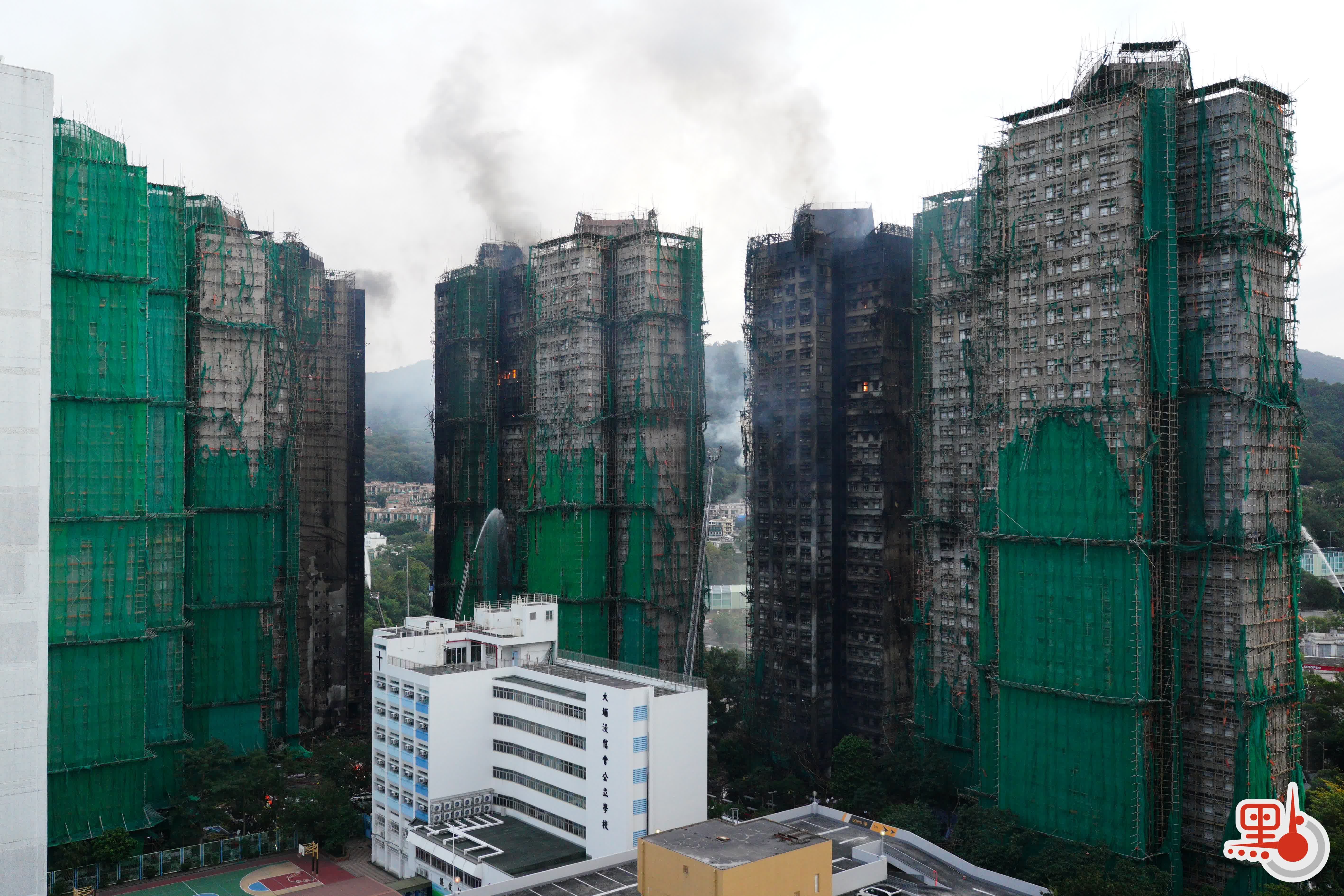 【點新聞報道】大埔宏福苑昨日(26日)發生五級火警,目前仍未救熄,截至今日(27日)中午,火警已造成至少55人死亡,逾60人受傷,包括1名消防員殉職。新界北總區重案組已就火警展開調查,除消防處發現建築物外牆安裝保護網、保護膜、防水帆布及塑膠布等懷疑未符合防火標準之外,警方亦發現一幢未被波及大廈的每層電梯大堂窗戶外被發泡膠包封。警方初步調查,發現由一間建築工程公司在大廈進行維修工程安裝,有理由相信工程公司負責人嚴重疏忽引致意外,導致重大傷亡。