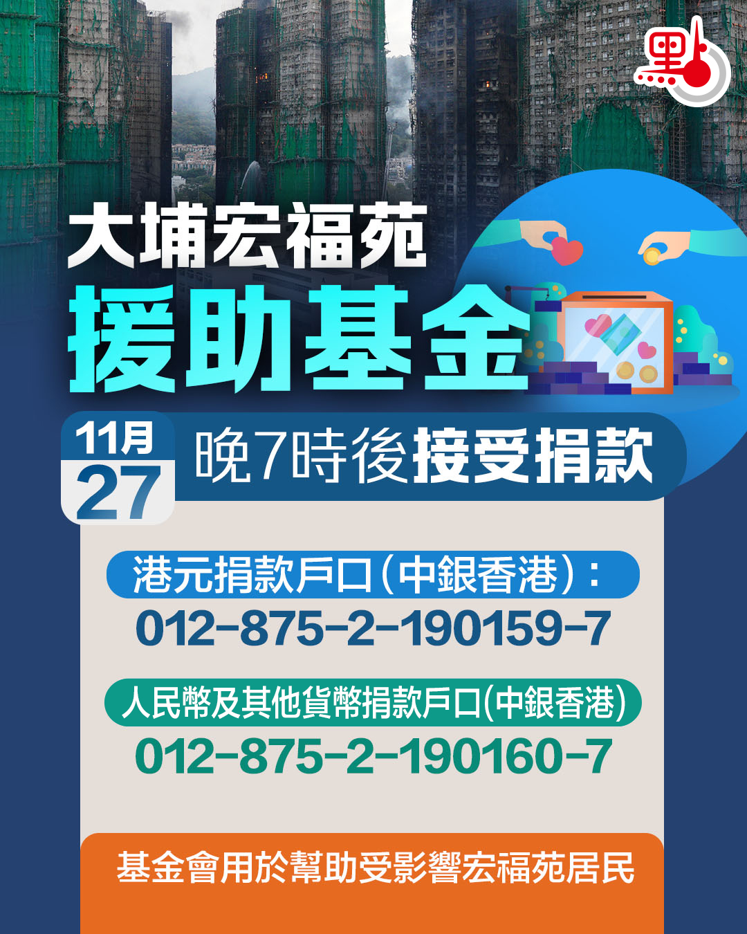 「大埔宏福苑援助基金」成立不足1日 已收5億善款