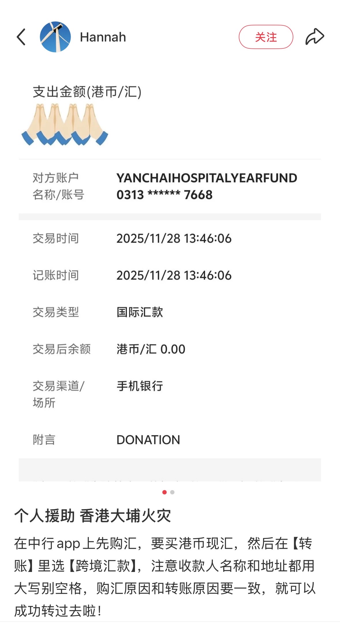 像這樣低調的、默默無聞的捐款者還有很多。記者在小紅書上搜索相關帖子時,不少人曬出自己第一筆成功跨境匯款的截圖,表達「希望能幫到香港同胞」的質朴心愿。但大部分人亦婉拒了記者的採訪請求,表示自己只是略盡綿力,「只求香港平安,不值得特別報道」。