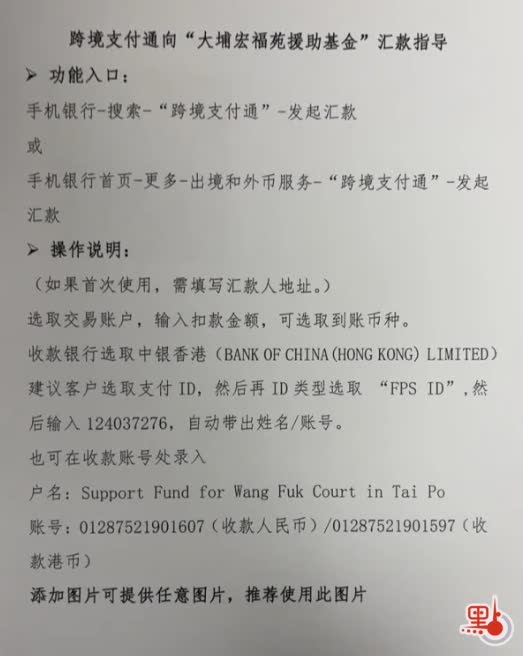 內地跨境向「大埔宏福苑援助基金」匯款指南(附詳細流程)