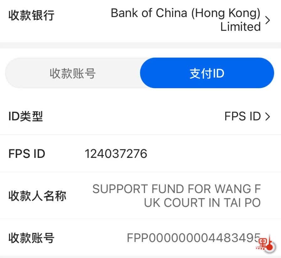 戶名:Support Fund for Wang Fuk Court in Tai Po